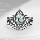 Crescent Moon | Coffin Cut Moss Agate Infinity Open Black Gold Engagement Ring 2pcs - Infinity Galaxy