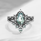Crescent Moon | Coffin Cut Moss Agate 'Till Death Do Us Apart' Ring Set 2pcs