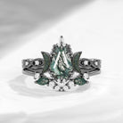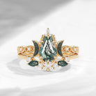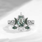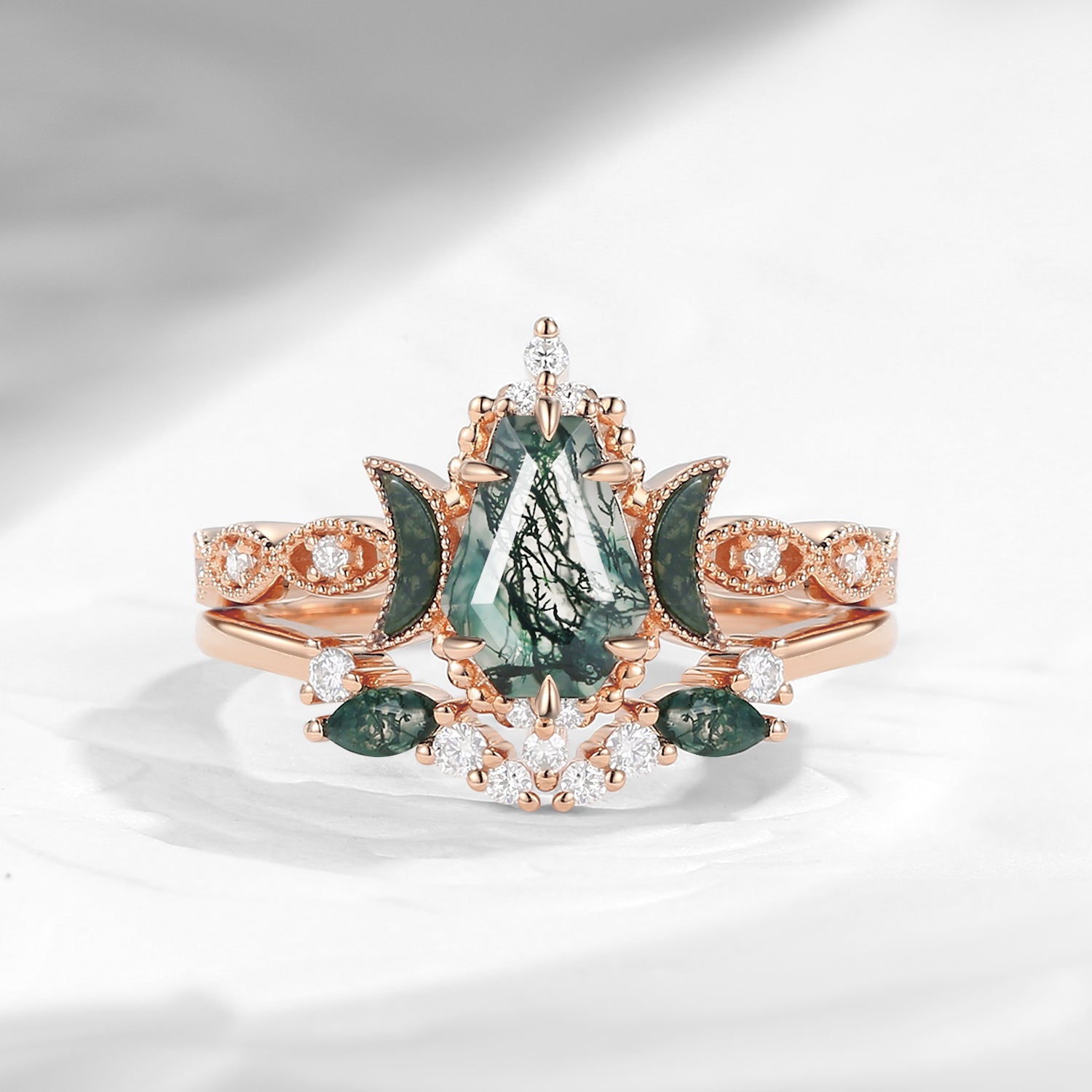 Crescent Moon | Coffin Cut Moss Agate 'Ultra Galaxy' Engagement Ring Set 2pcs