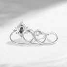 Crescent Moon | Coffin Cut Salt and Pepper Diamond Engagement Ring Set 3pcsold Vintage Diamond Wedding Ring Art Deco Bridal Set Unique Pear Diamond Anniversary Ring Set 3pcs