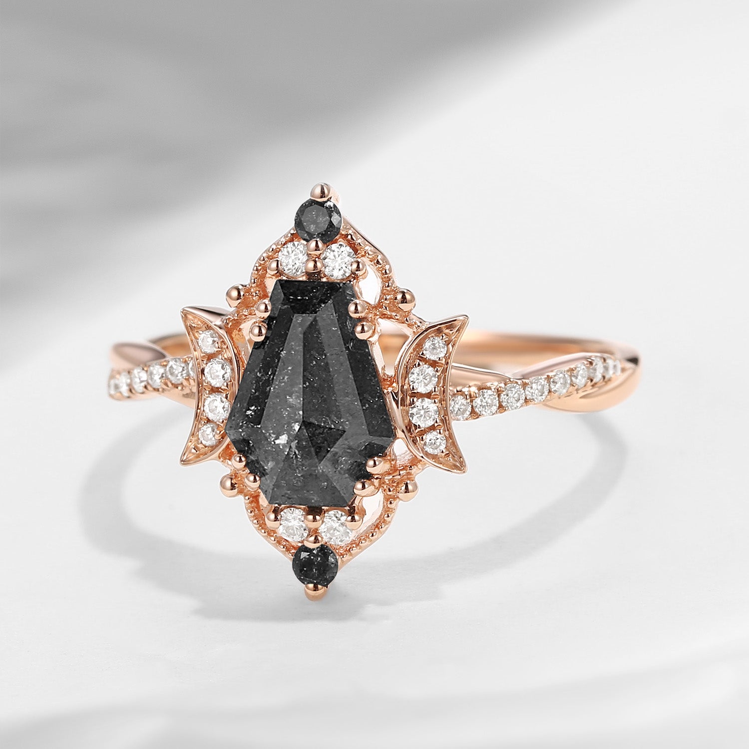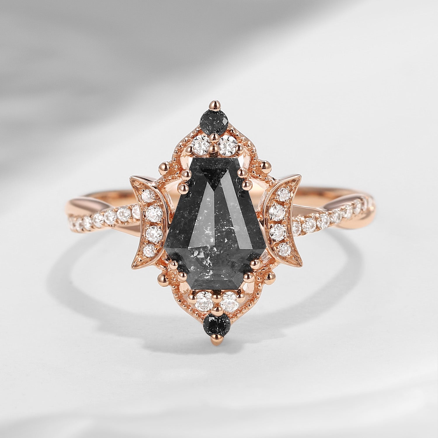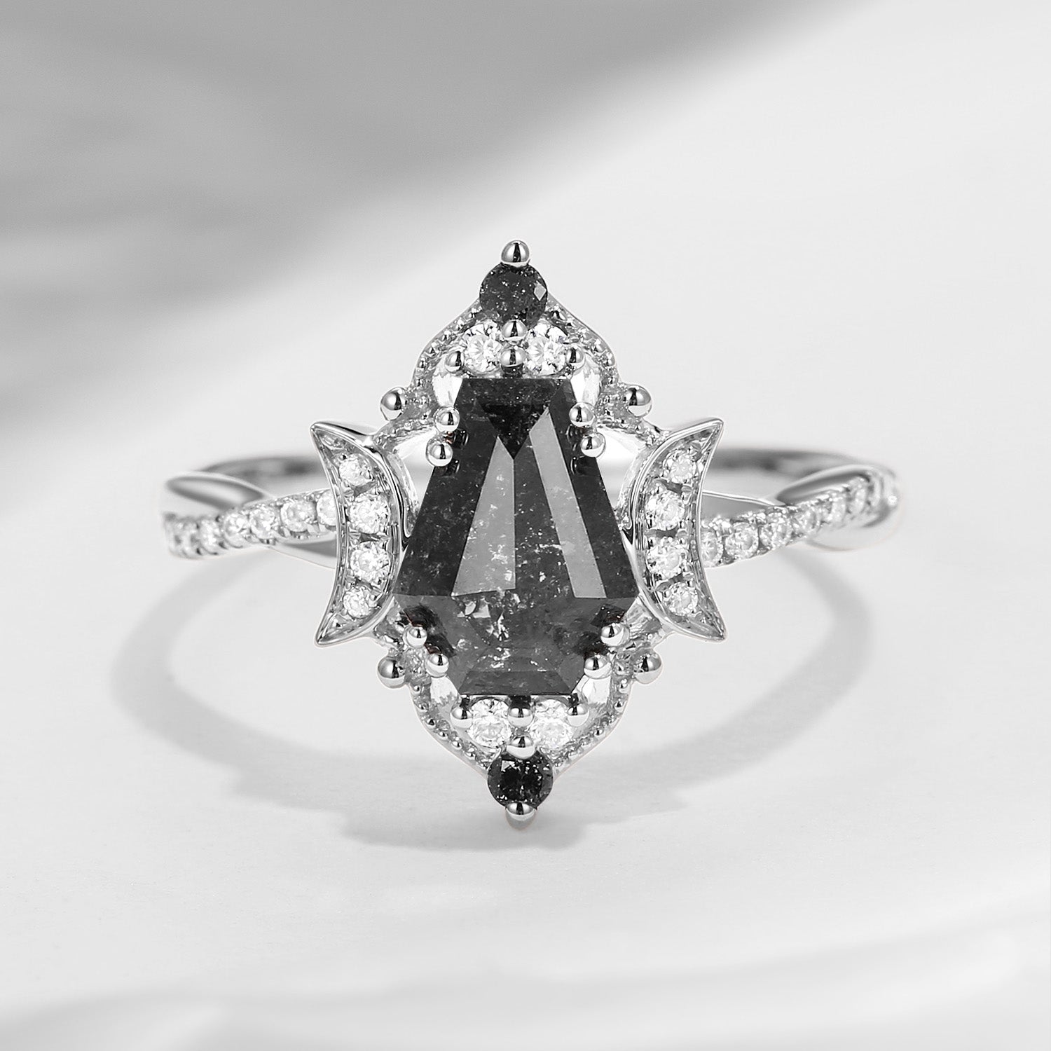Crescent Moon | Coffin Cut Salt And Pepper Diamond Twisted Engagement Ring