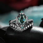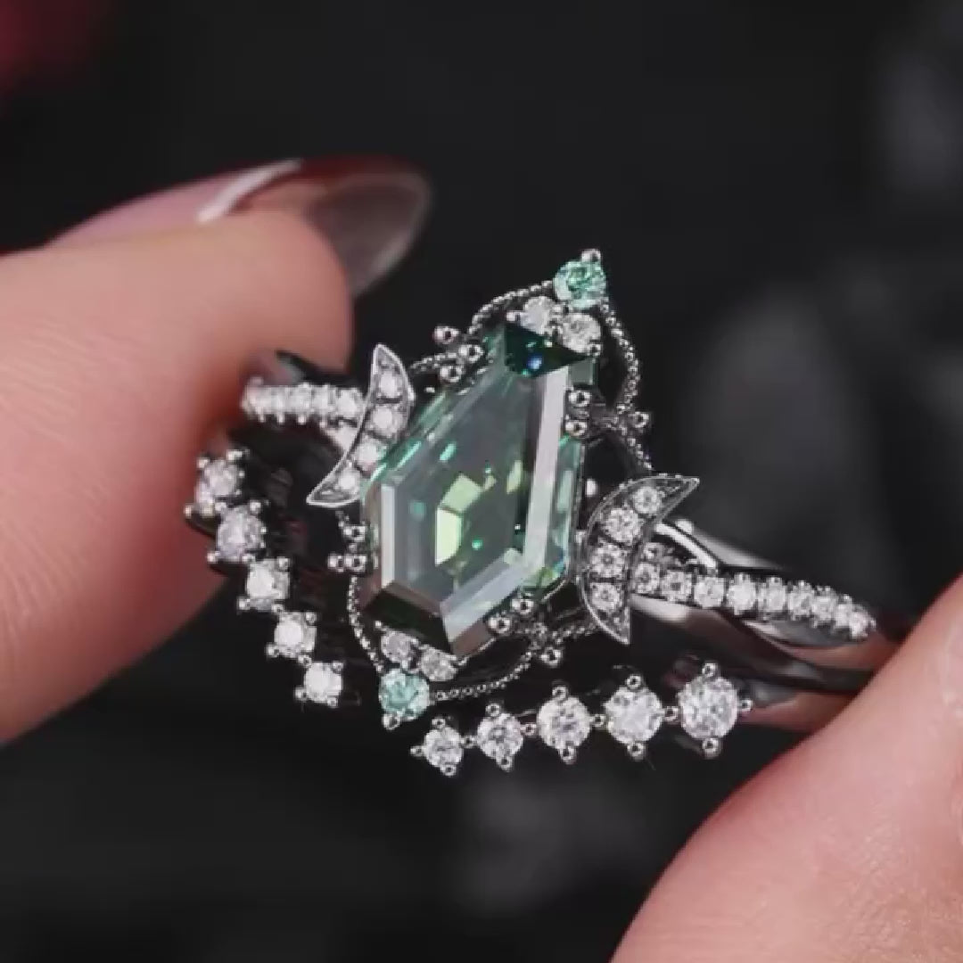 Crescent Moon | Coffin Cut Teal Moissanite Infinity Open Black Gold Engagement Ring 2pcs - Infinity Galaxy