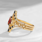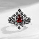 Crescent Moon | Coffin Garnet Engagement Ring 3pcs 18k - Till Death Do Us Apart