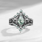 Coffin Moss Agate Crescent Engagement Ring 3pcs Moon Bridal Ring Vintage Engagement Ring Art Deco Vintage Till Death Do US Apart
