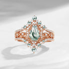 • Center Stone - Moss Agate, symbolizing enduring love and the journey through hardship towards a fruitful relationship.