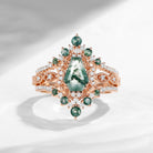 Crescent Moon | Coffin Moss Agate Engagement Ring 3pcs 18k - Till Death Do Us Apart