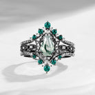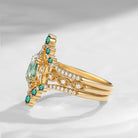 Crescent Moon | Coffin Moss Agate & Lab Emerald Ring 3pcs 18k - Till Death Do Us Apart