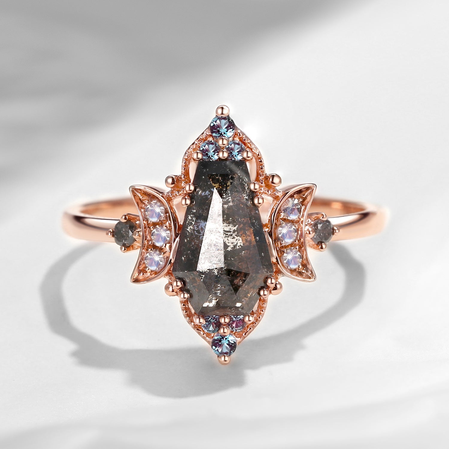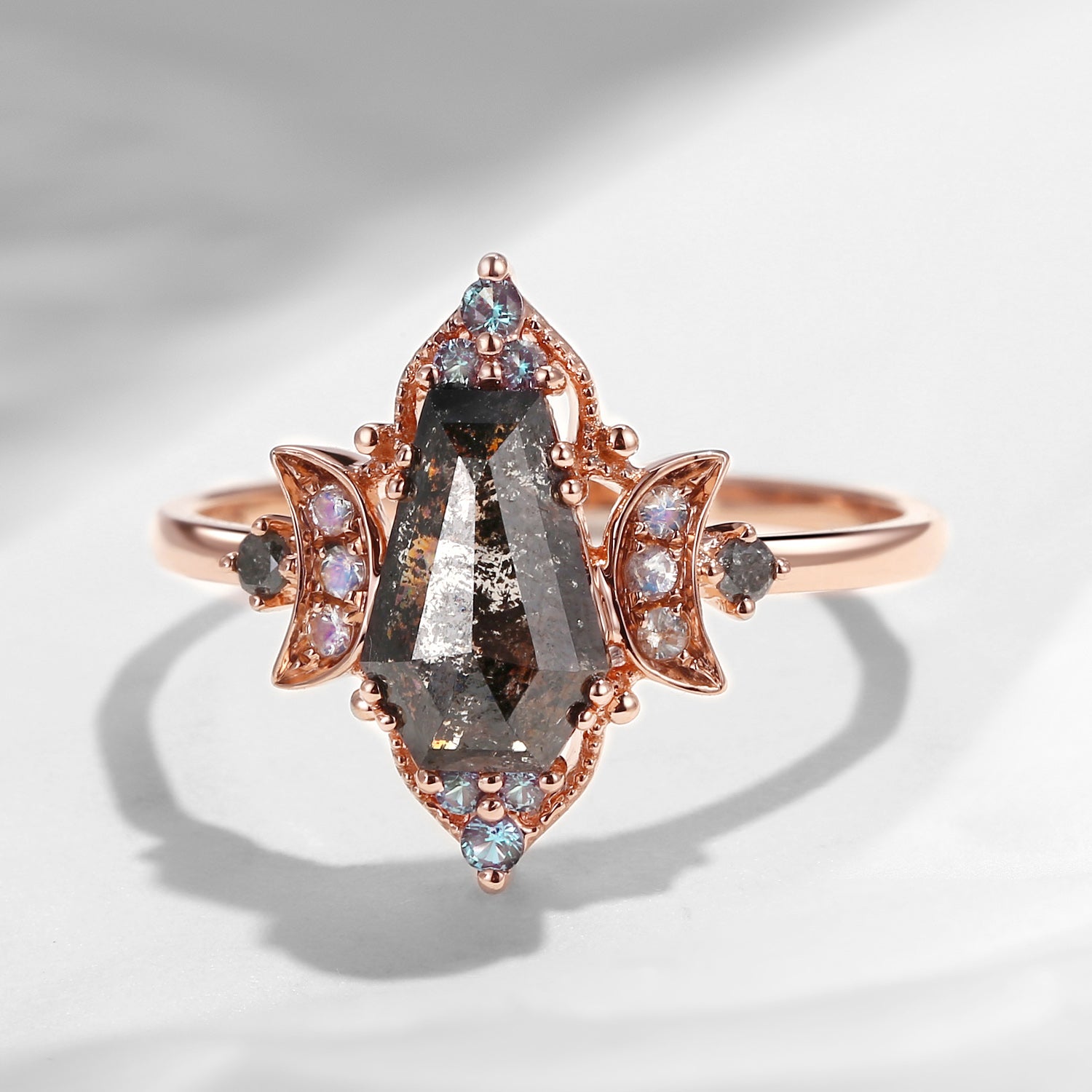 Crescent Moon | Coffin Salt And Pepper Diamond 'Sweet Revenge' Engagement Ring