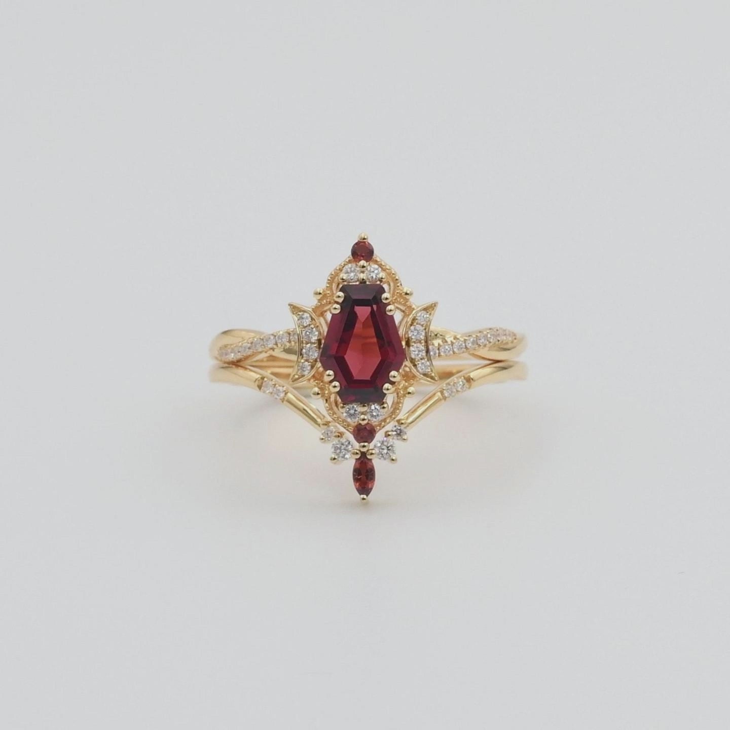 Crescent Moon | Infinity Coffin Garnet Twisted Engagement Ring Set 2pcs - Alexandria