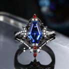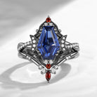 Crescent Moon | Infinity Coffin Lab Sapphire & Garnet Twisted Black Gold Engagement Ring Set 2pcs - Alexandria
