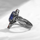 Coffin Cut Lab Sapphire & Garnet Engagement Ring 'Alexandria' Black Gold Bridal Set 2pcs Infinity Engagement Ring Coffin