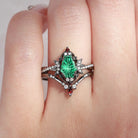 Crescent Moon | Infinity Firework Cut Coffin Lab Emerald Twisted Engagement Ring Set 2pcs - Alexandria