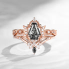 Crescent Moon | Unique Coffin Cut Black Rutilated Quartz Engagement Ring Set 2pcs - Luna