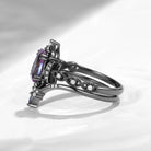 Crescent Moon | Unique Coffin Cut Lab Alexandrite Black Gold Engagement Ring Set 2pcs - Luna