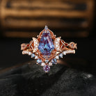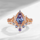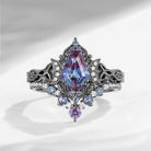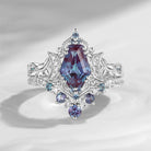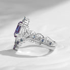 Crescent Moon | Unique Coffin Cut Lab Alexandrite Infinity Engagement Ring Set 2pcs Vintage Cluster