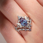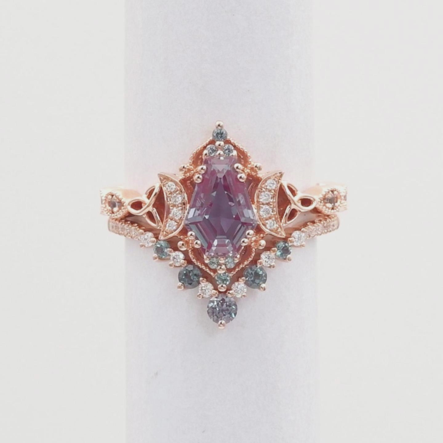 Crescent Moon | Unique Coffin Cut Lab Alexandrite Celtic Engagement Ring Set 2pcs