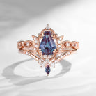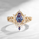 Crescent Moon | Unique Coffin Cut Lab Alexandrite Engagement Ring Set 2pcs - Luna
