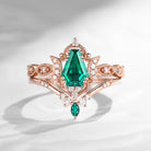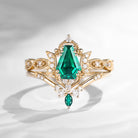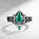 Crescent Moon | Unique Coffin Cut Lab Emerald Engagement Ring Set 2pcs - Luna