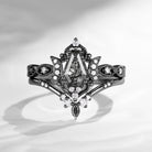 • Design - Featuring a delicate milgrain setting with two crescent moons embracing a center coffin, with a matching band to add some sparkle and moonlight to your Starland.