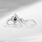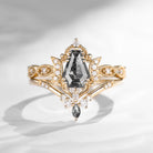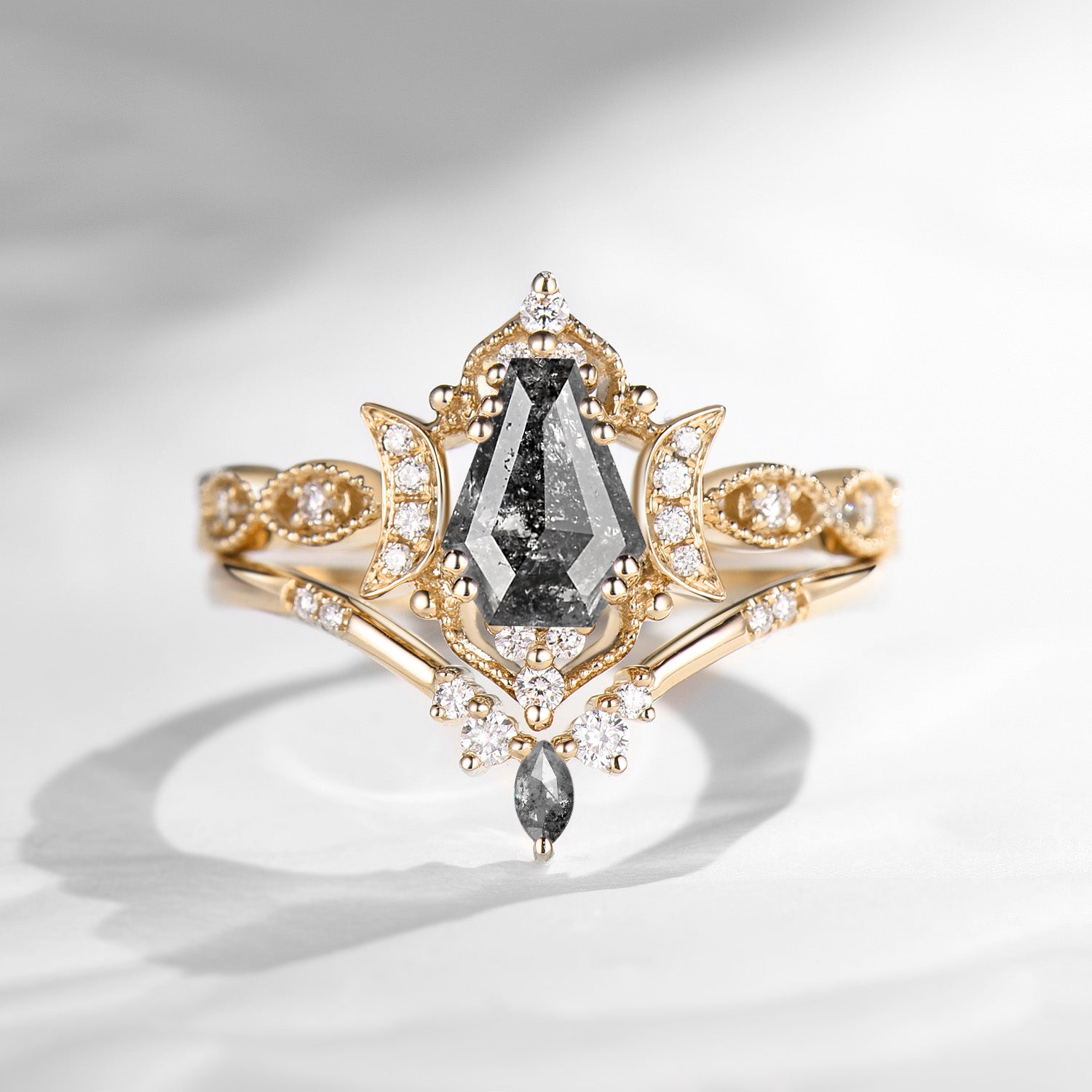 Crescent Moon | Unique Coffin Cut Natural Salt And Pepper Diamond Engagement Ring Set 2pcs - Luna