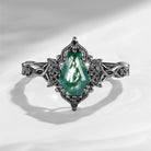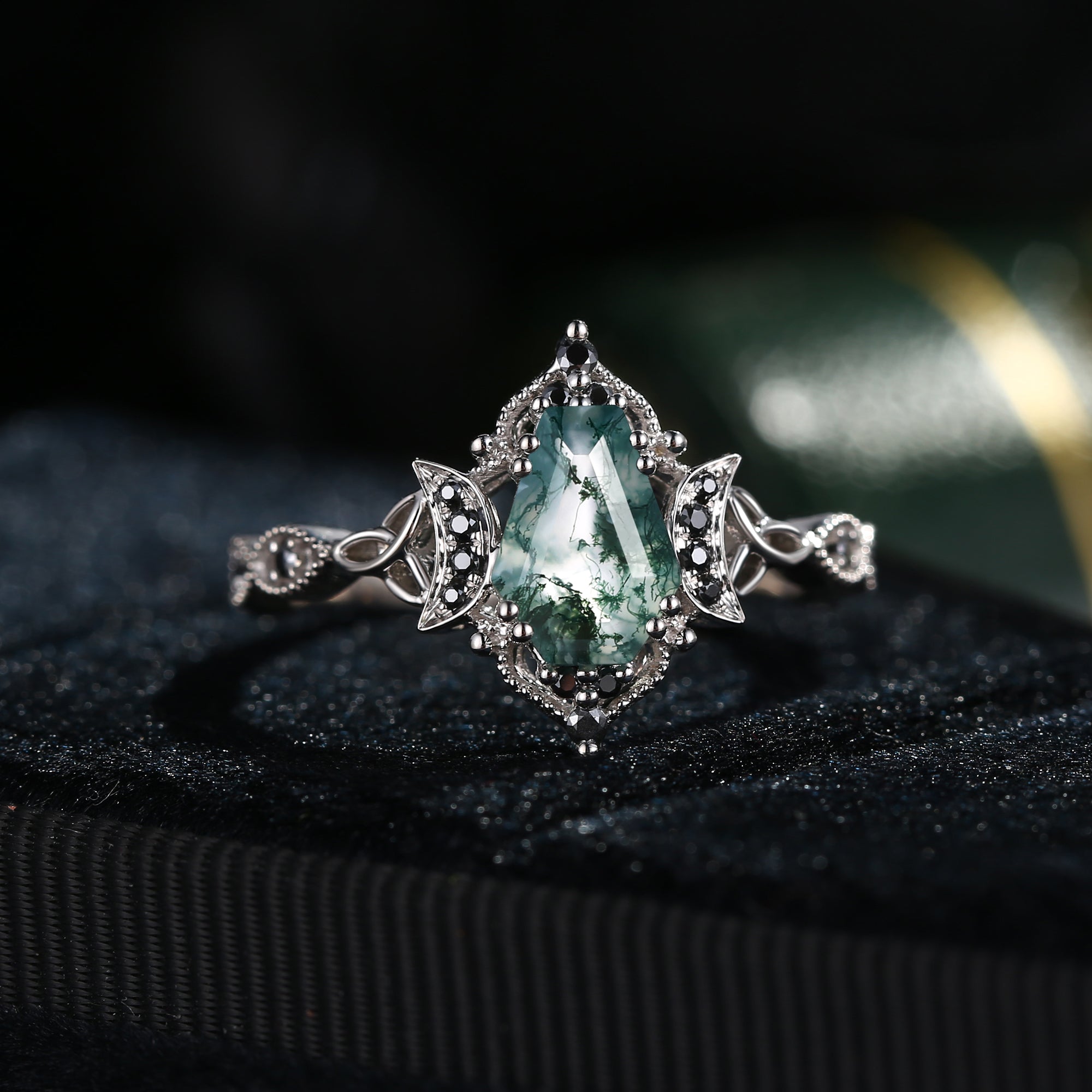 Crescent Moon | Unique Coffin Moss Agate & Black Moissanite Infinity Celtic Engagement Ring