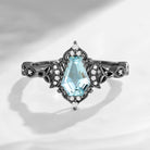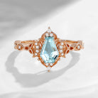 Crescent Moon | Unique Coffin Natural Aquamarine Celtic Engagement Ring