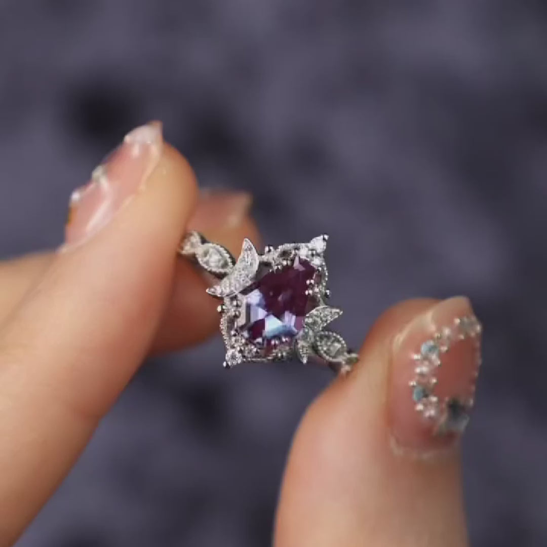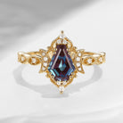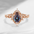Coffin Cut Alexandrite Engagement Ring Boho Art Deco Engagement Ring Vintage Style Cluster Coffin Ring