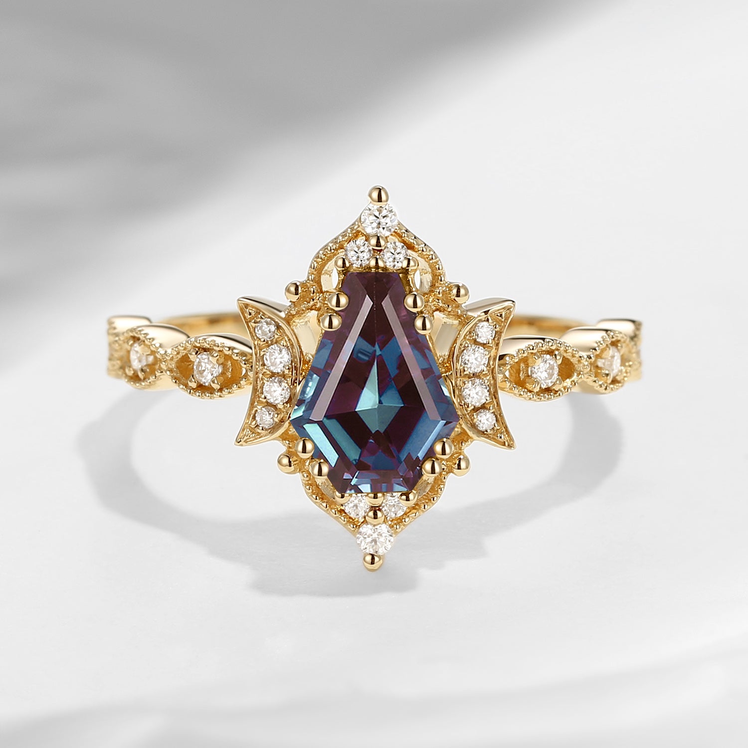 Crescent Moon | Vingtage Unique Milgrain Coffin Cut Alexandrite Engagement Ring