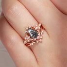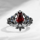 Gothic Coffin Shaped Black Rutilated Quartz Nature Inspired Engagement Ring Set 2pcs