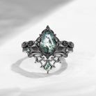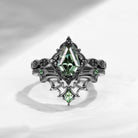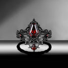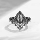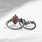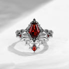Gothic Inspired 'Dark Romance' Coffin Shaped Garnet Black Gold Engagement Ring Set 2pcs