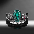 Gothic Inspired Skull & Skeleton Coffin Cut Lab Emerald 2-in-1 Engagement Ring