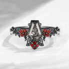 Gothic Style Coffin Black Rutilated Quartz Vine Thorns & Roses Engagement Ring
