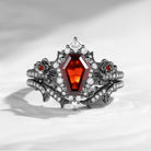 Gothic Style Coffin Garnet Garden Of Eden Thorns & Roses Black Gold Ring Set 2pcs