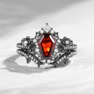 Gothic Style Coffin Moissanite Garden Of Eden Thorns & Roses Black Gold Ring Set 2pcs