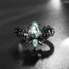 Gothic Style Coffin Moss Agate Vine And Thorns Engagement Ring 2pcs
