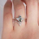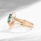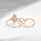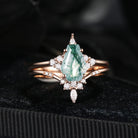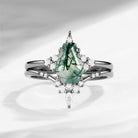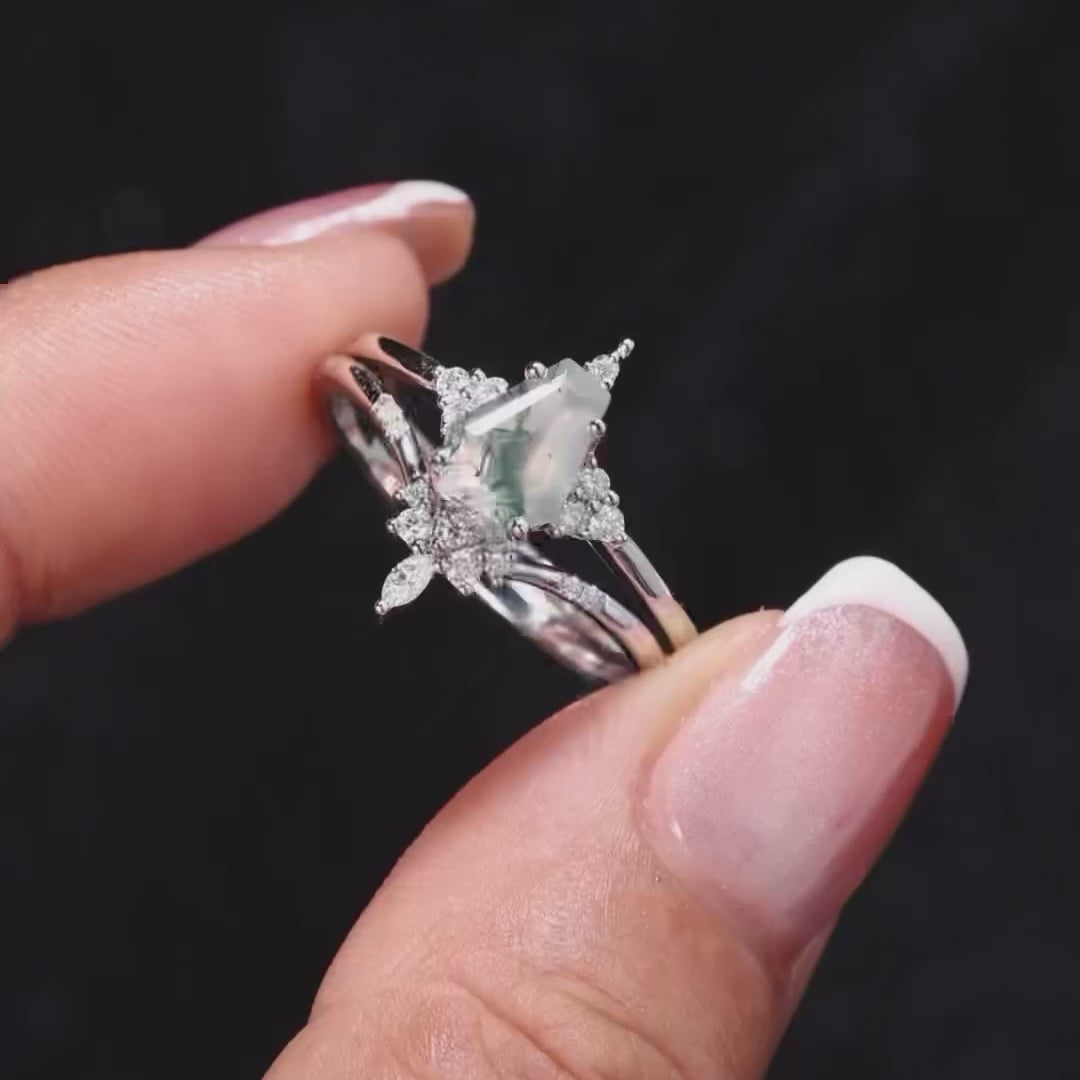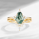 Unique Coffin Moss Agate Engagement Ring Star Ring Set 2Pcs Coffin Cut Moss Agate Bridal Cluster Ring