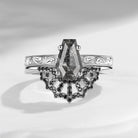 Vintage Filigree Coffin Spider Web Salt And Pepper Diamond Engagement Ring Set 2pcs