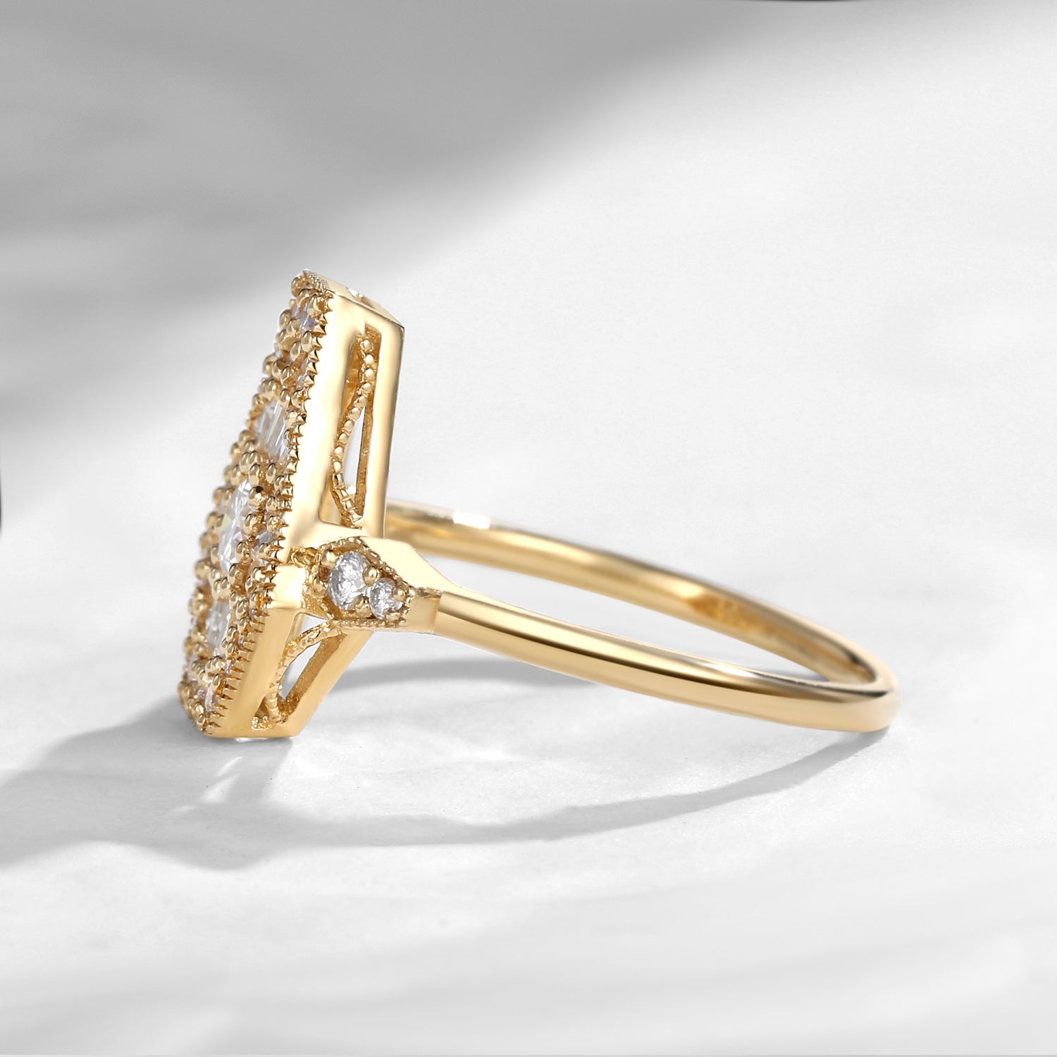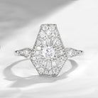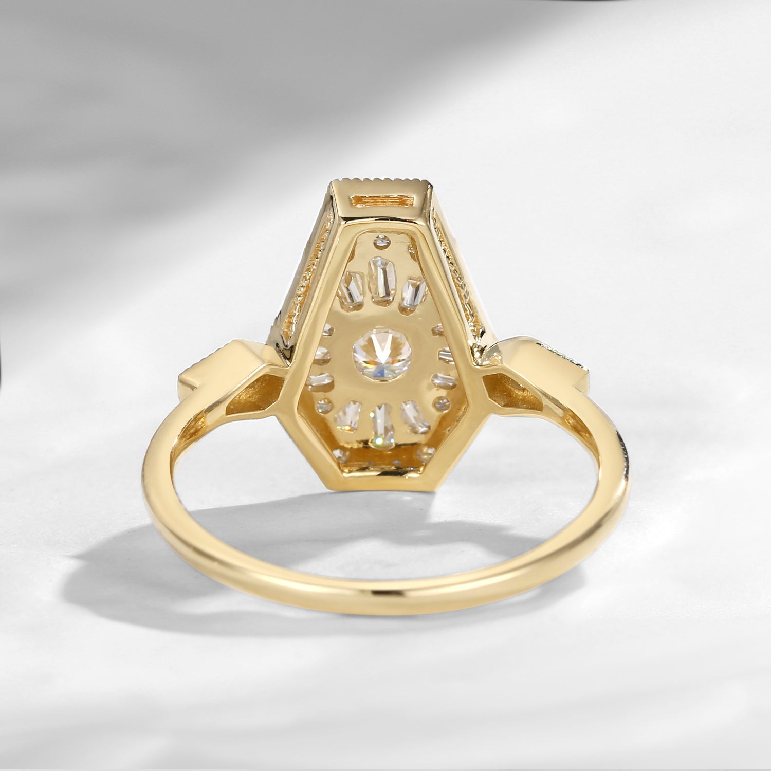 Art Deco Unique Round Shaped Moissanite Cluster Coffin Engagement Ring