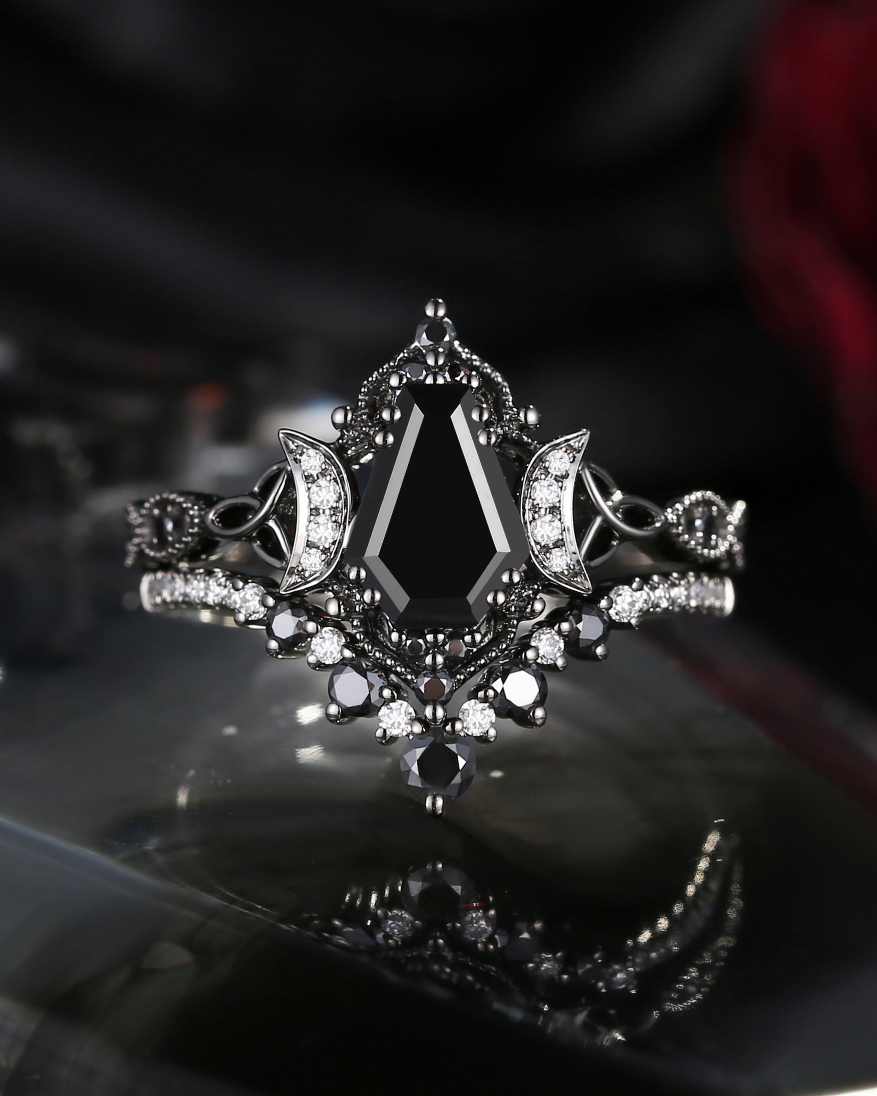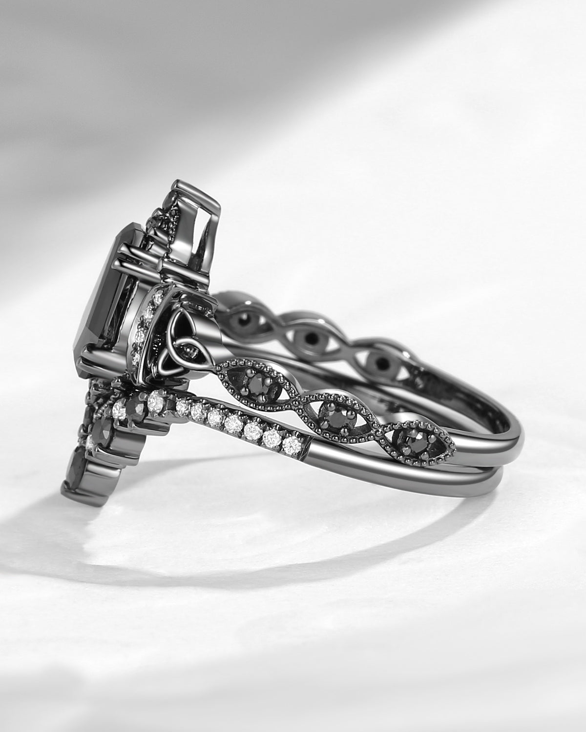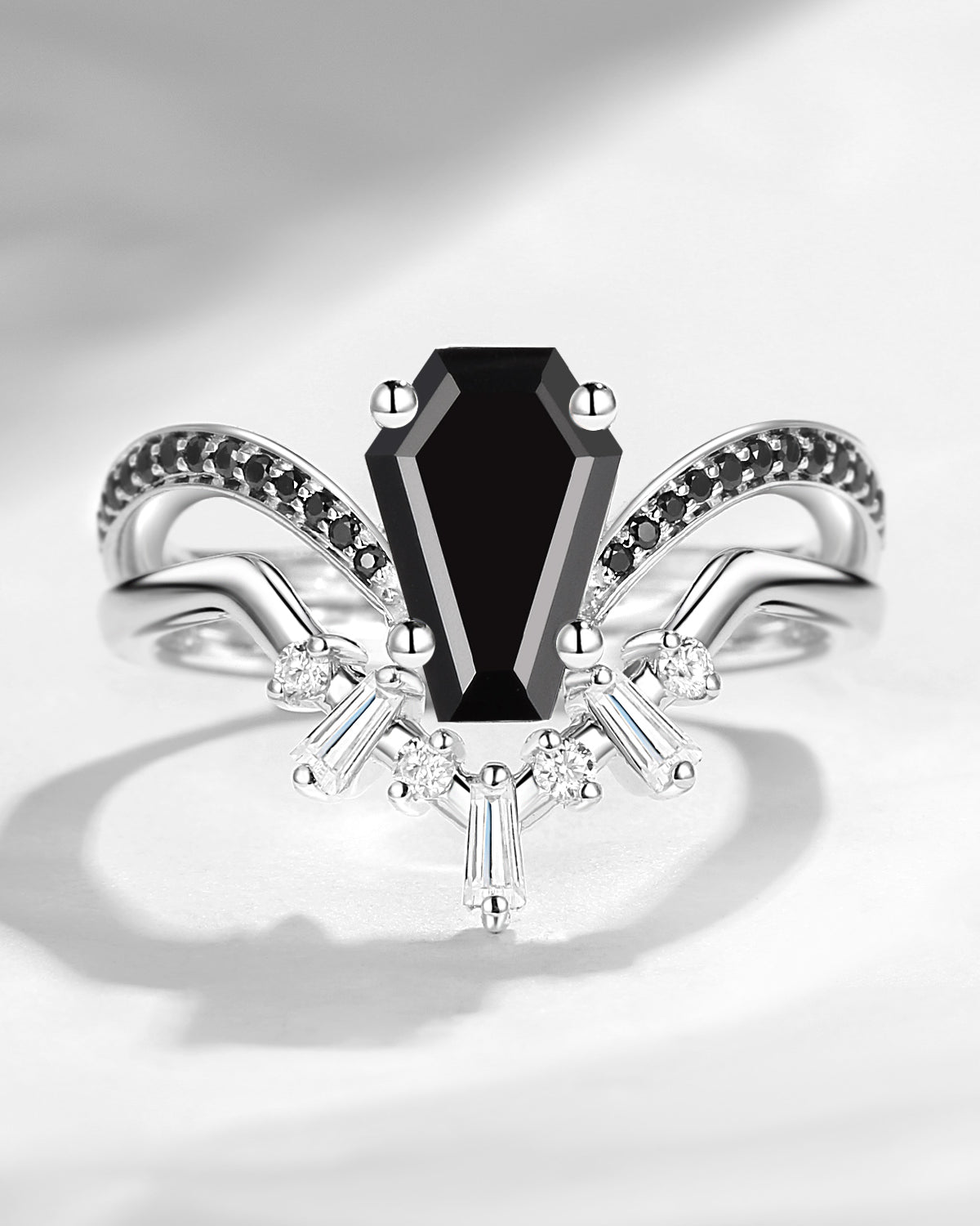 Coffin Spider Web Stackable Moissanite Black Gold Engagement Ring Set 2pcs