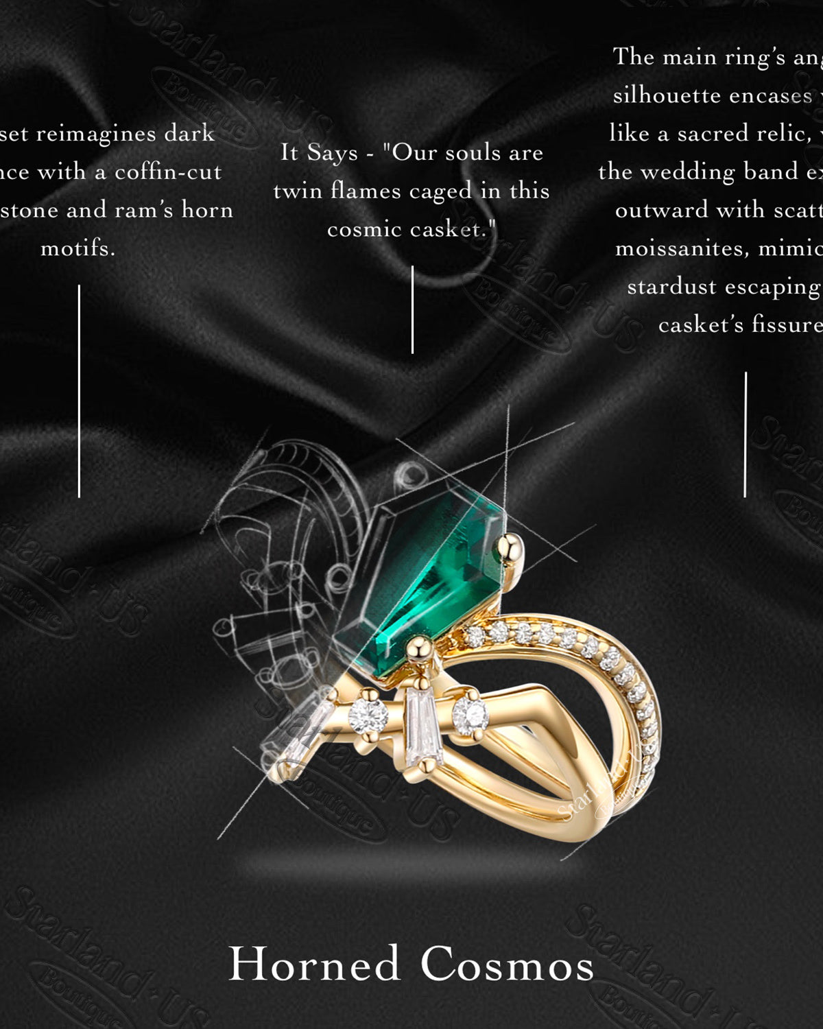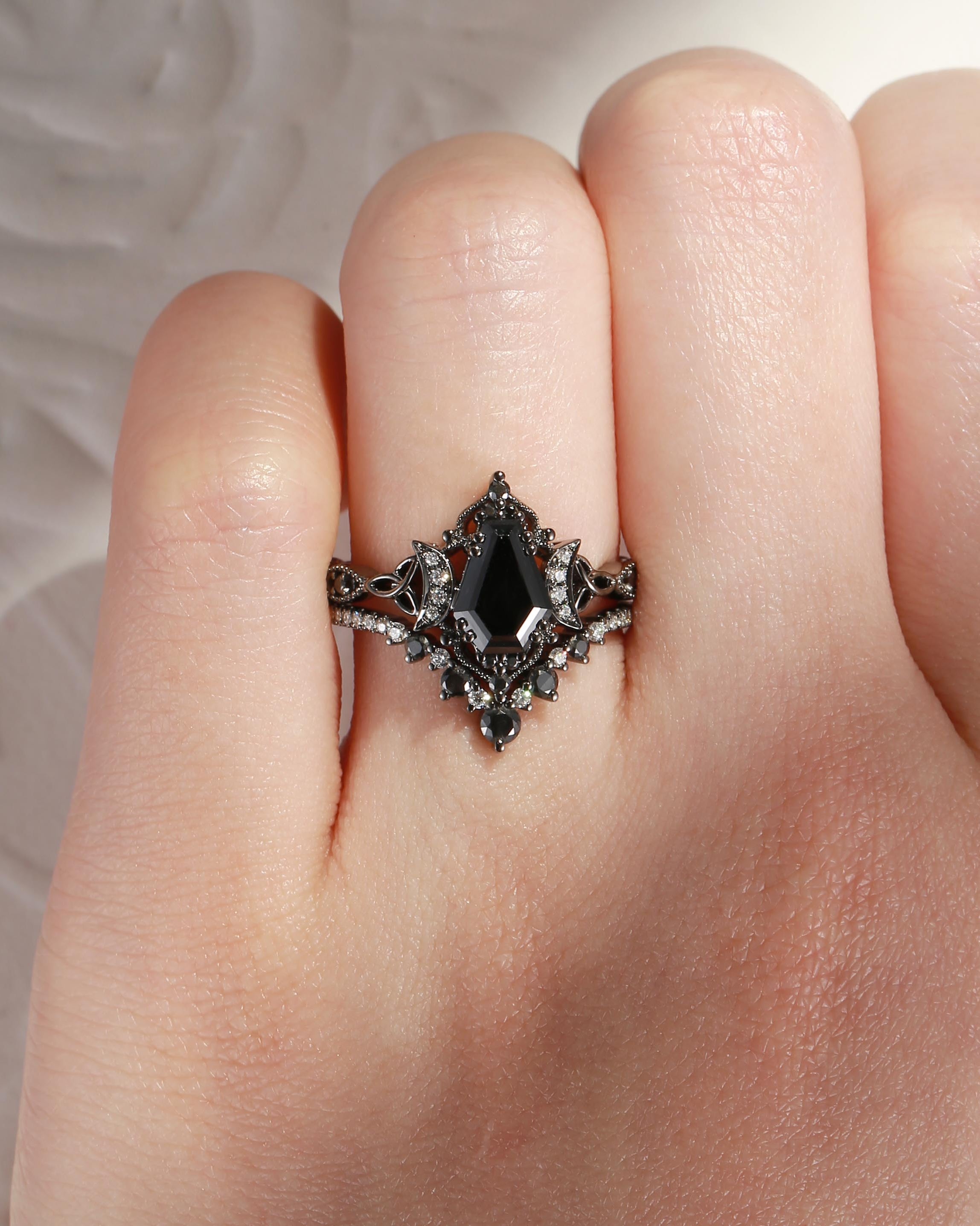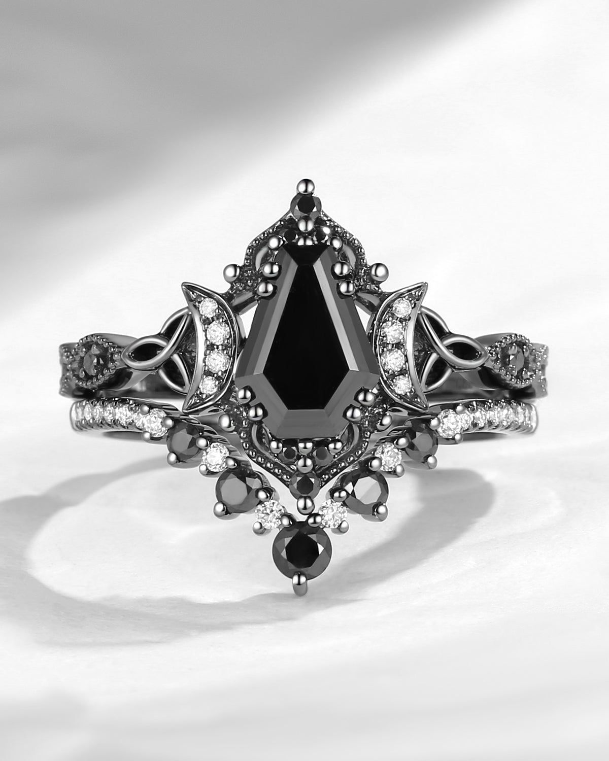 Coffin Spider Web Stackable Moissanite Black Gold Engagement Ring Set 2pcs