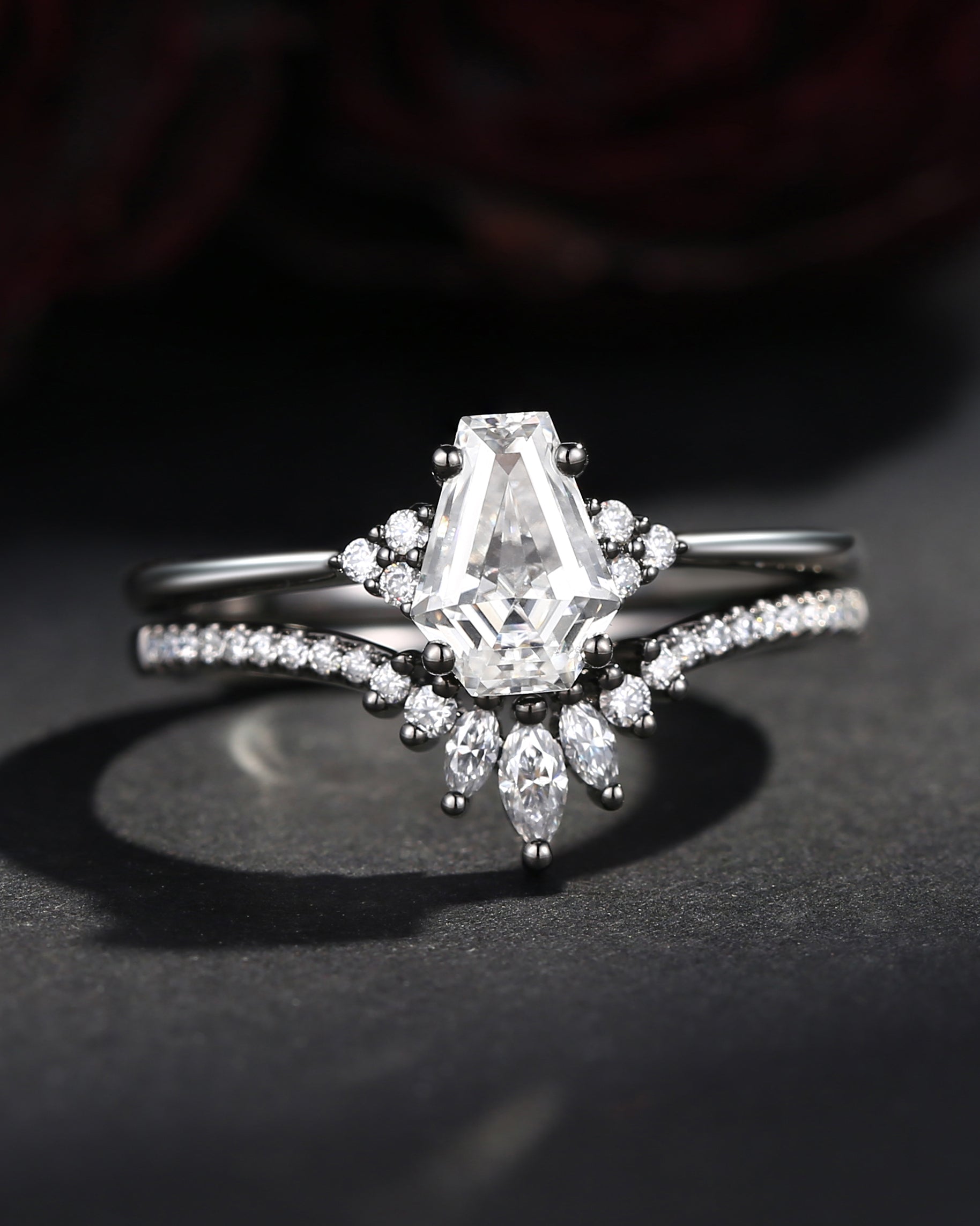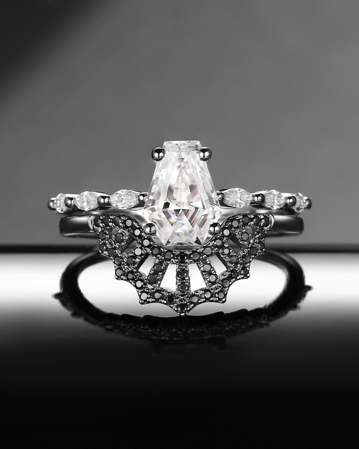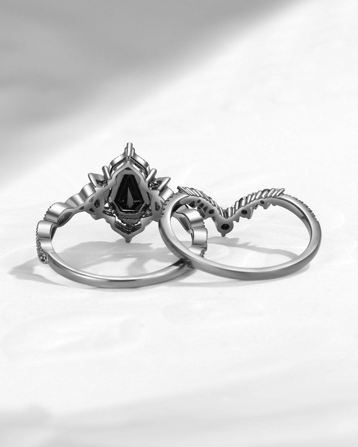 Vintage Coffin Cut Black Moissanite Curved Bridal Set 2pcs