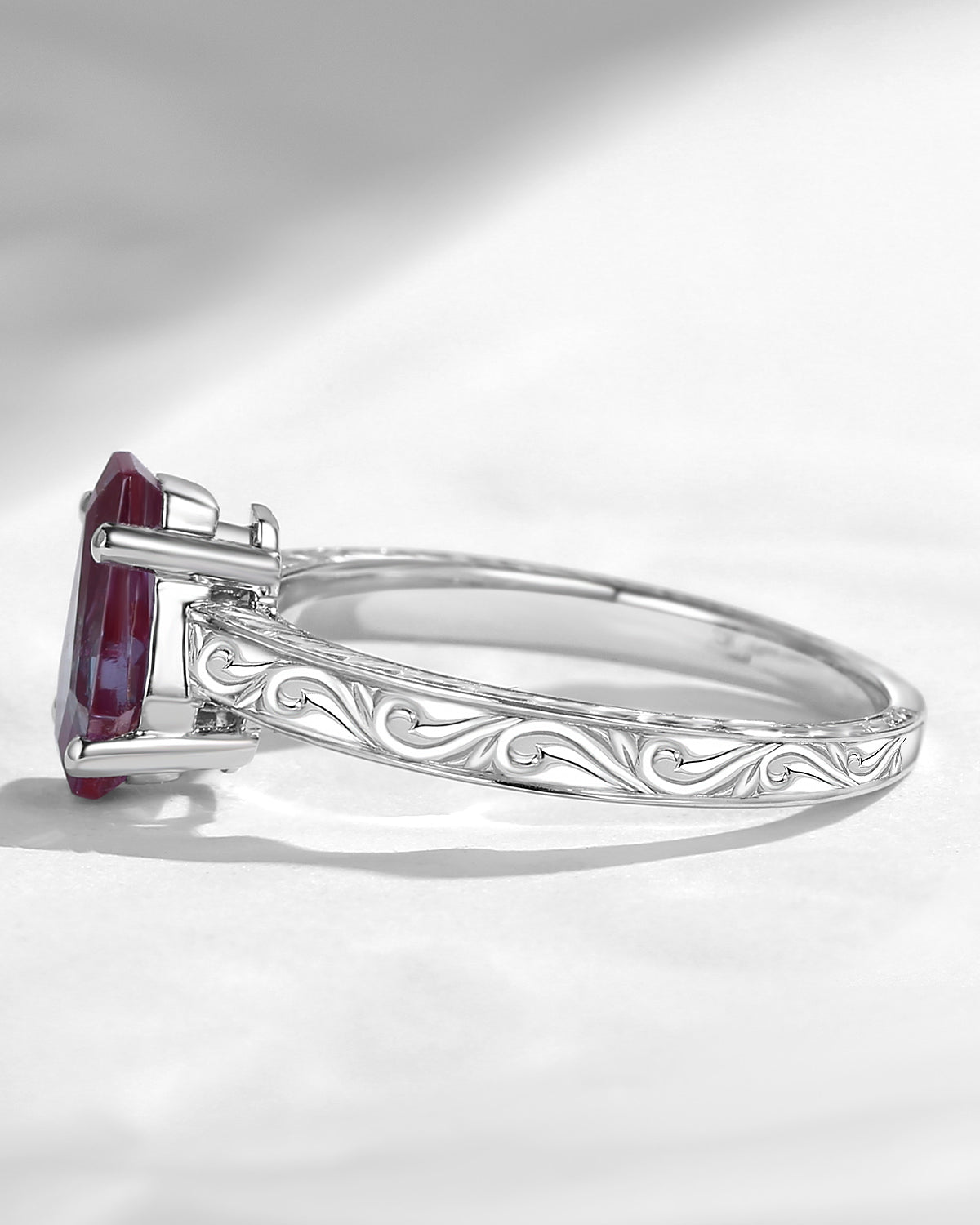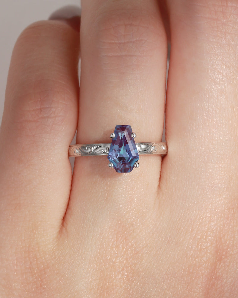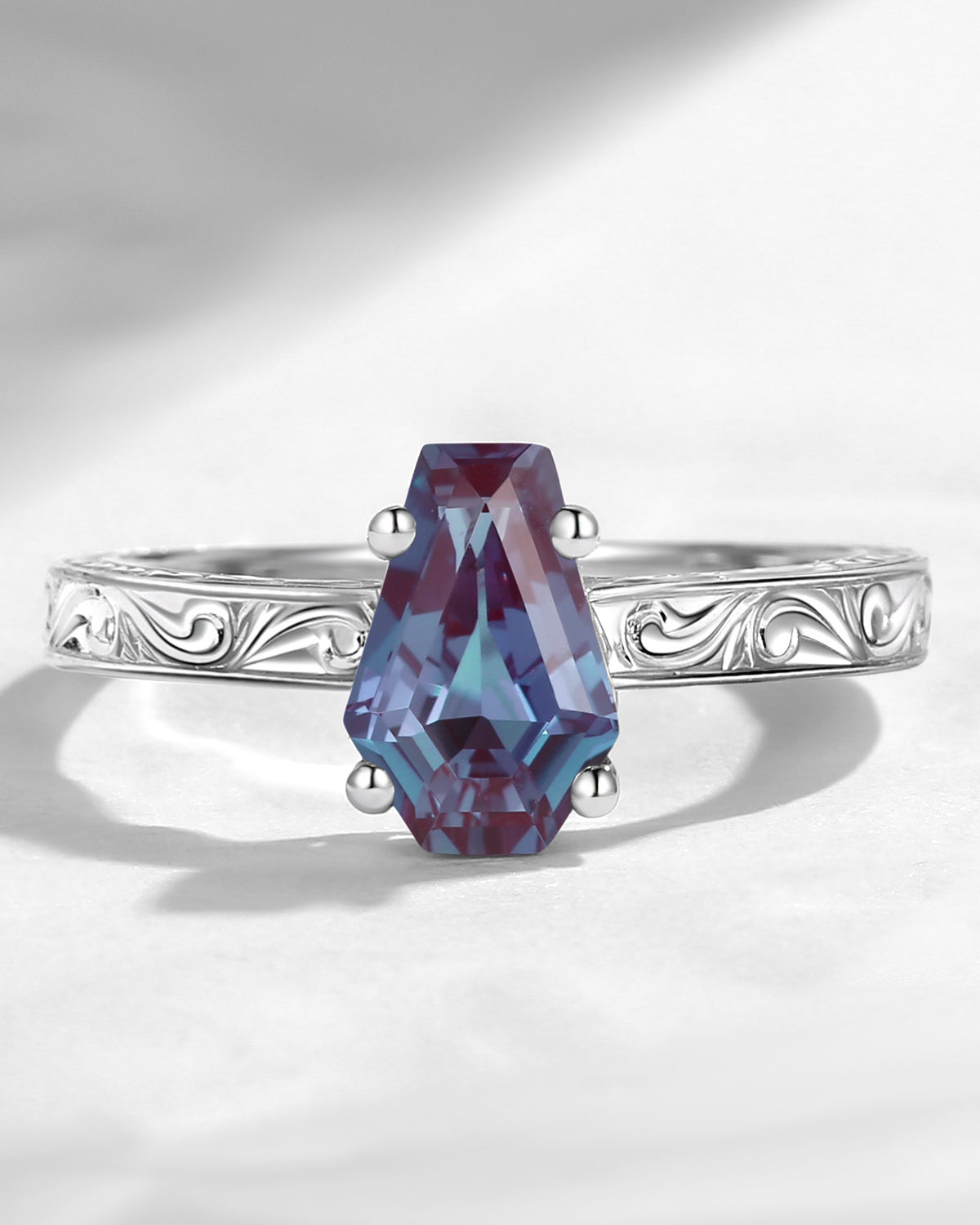 Vintage Filigree Coffin Spider Web Lab Alexandrite Engagement Ring