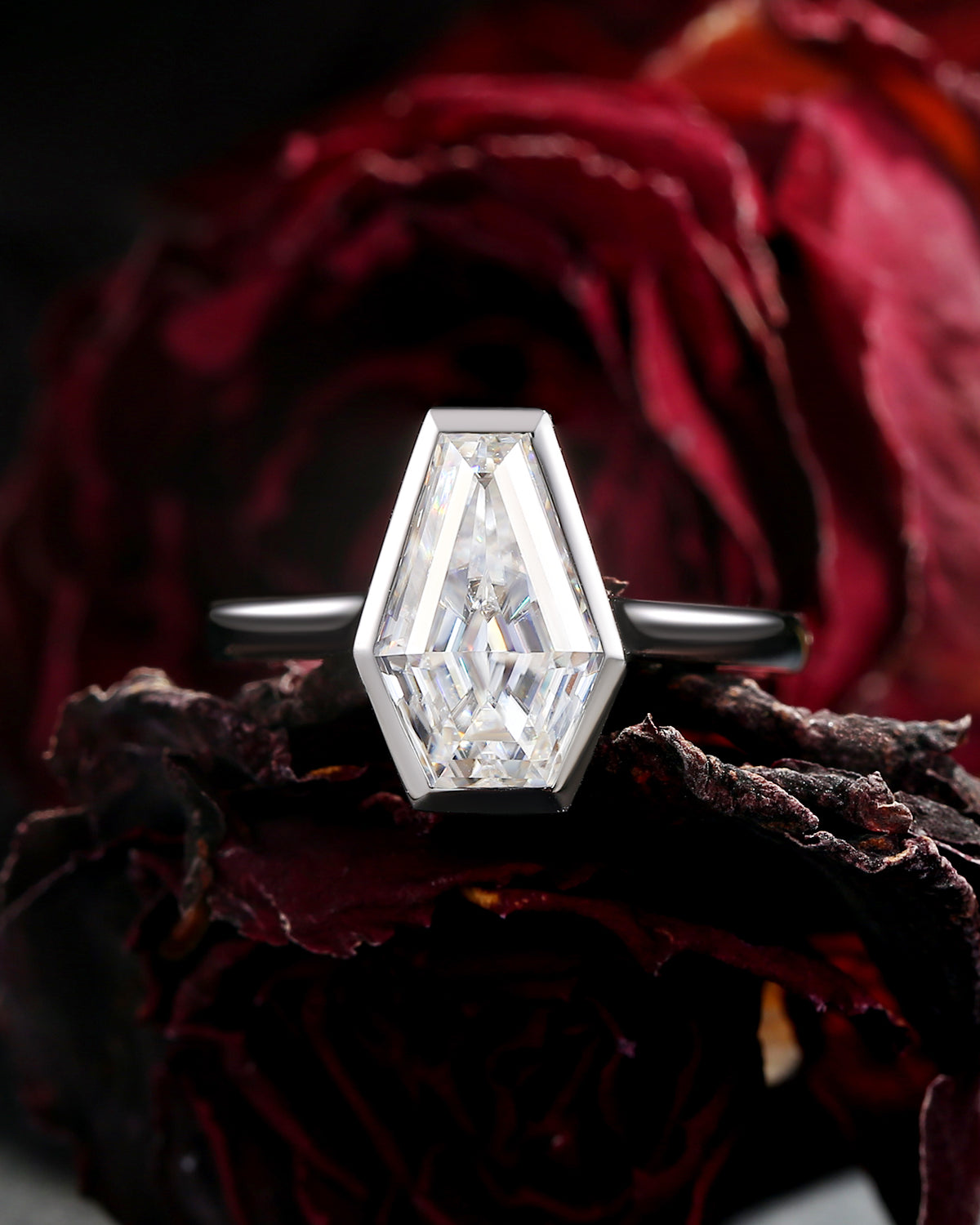 Unique Coffin Moissanite Solitaire Classic Engagement Ring