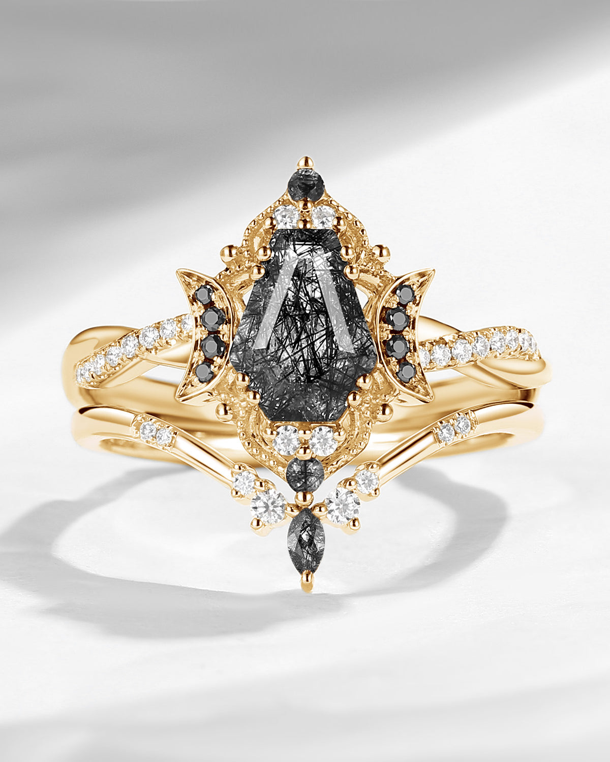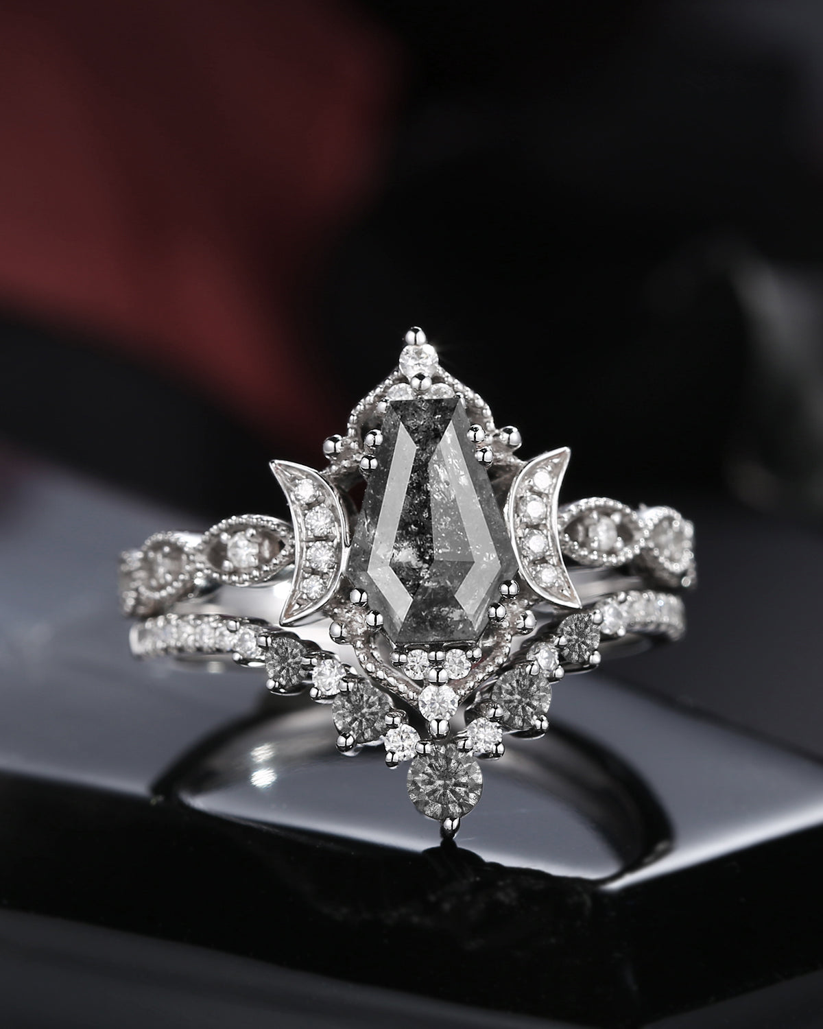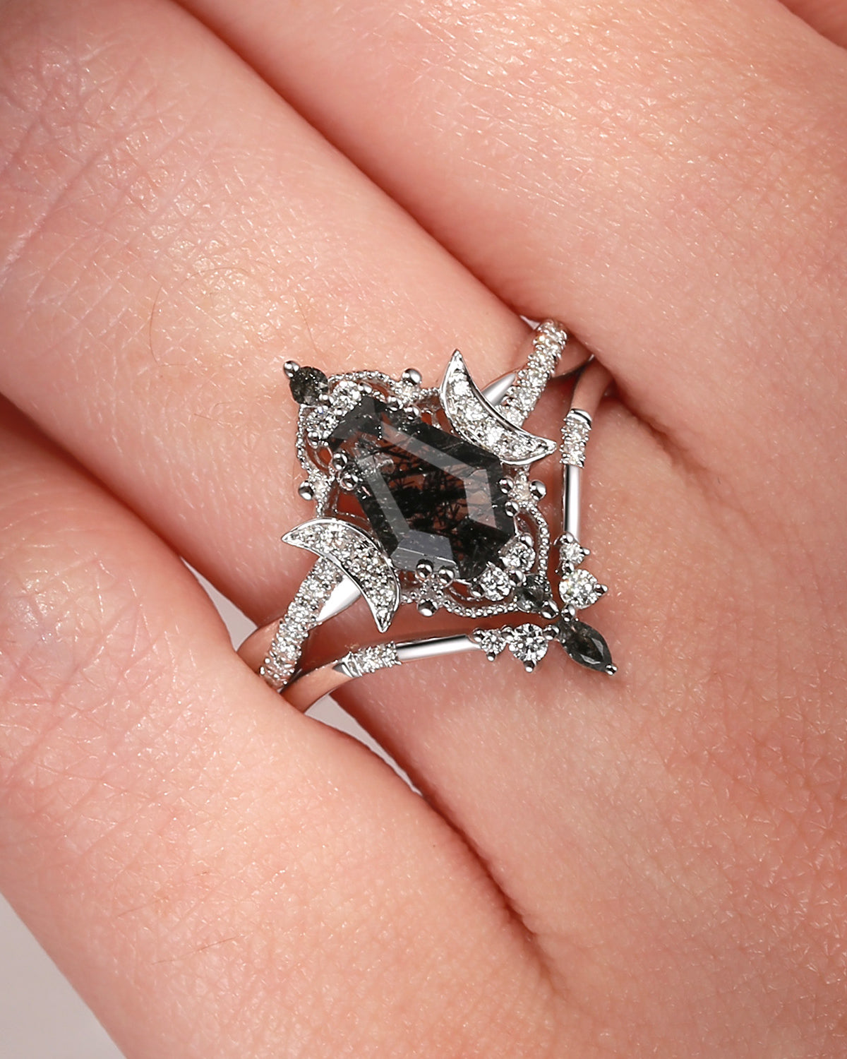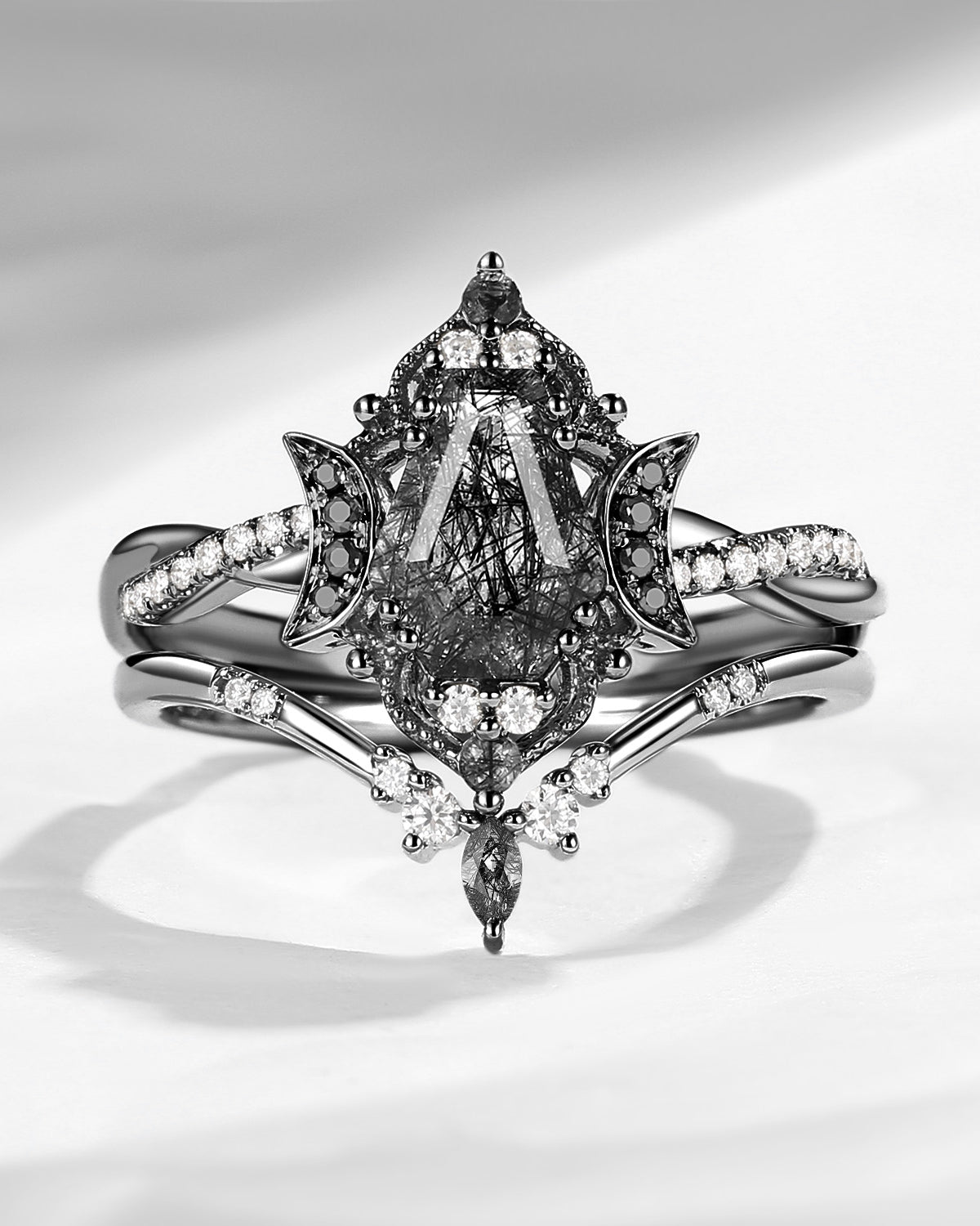 Gothic Style Coffin Black Moissanite Vine And Thorns Engagement Ring 2pcs