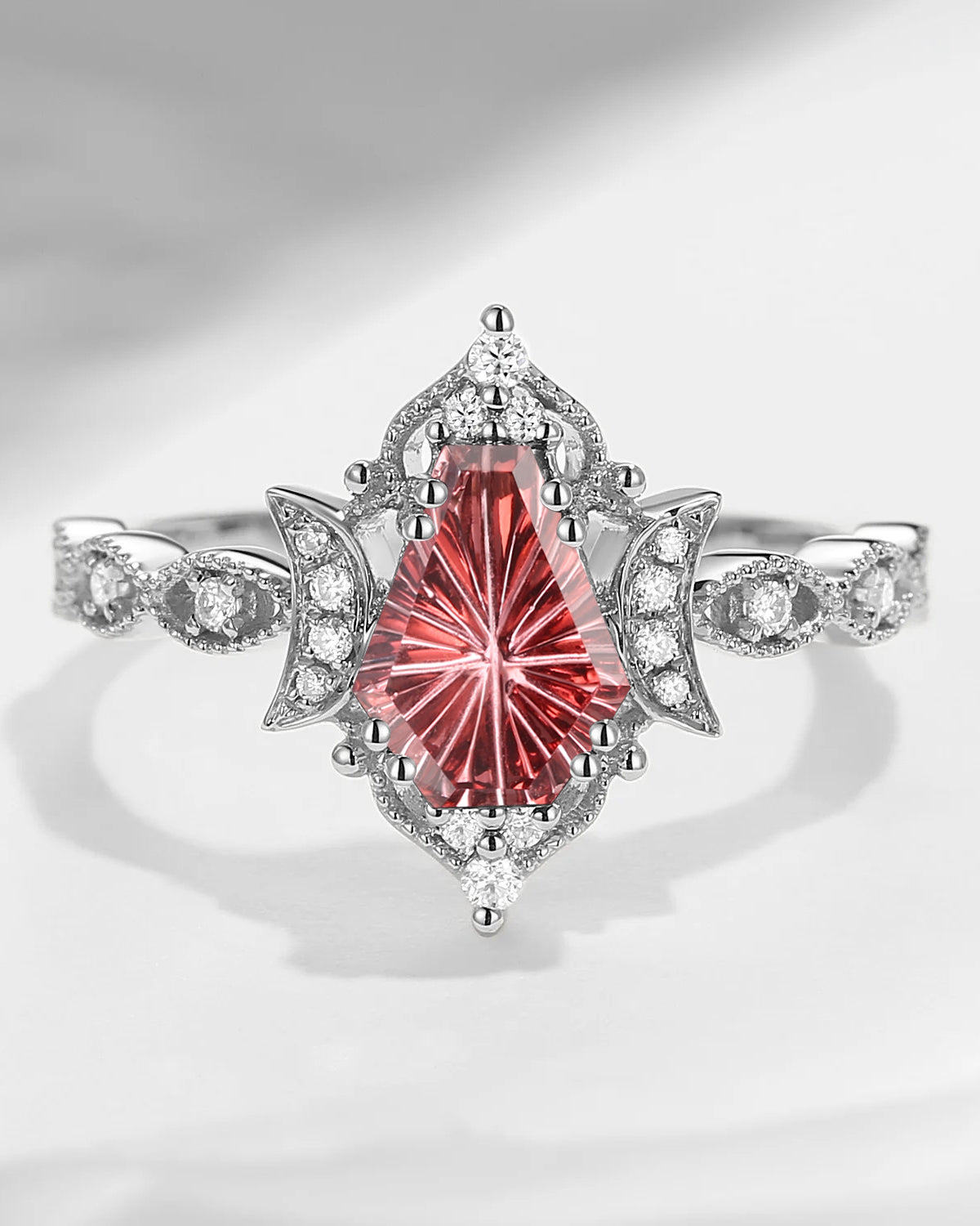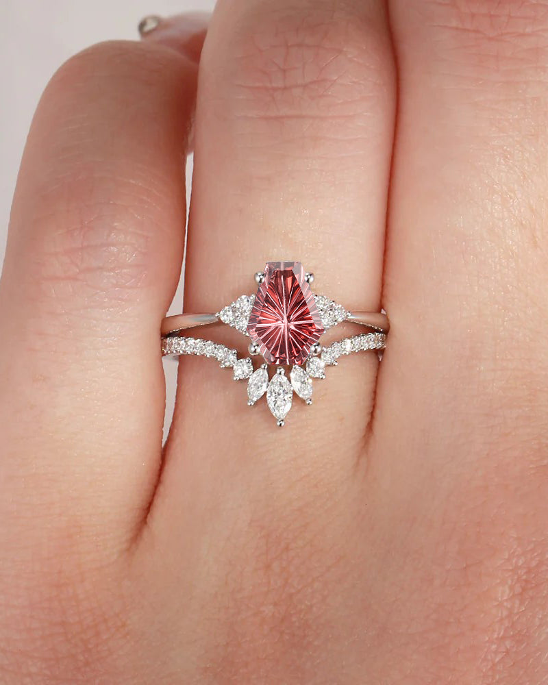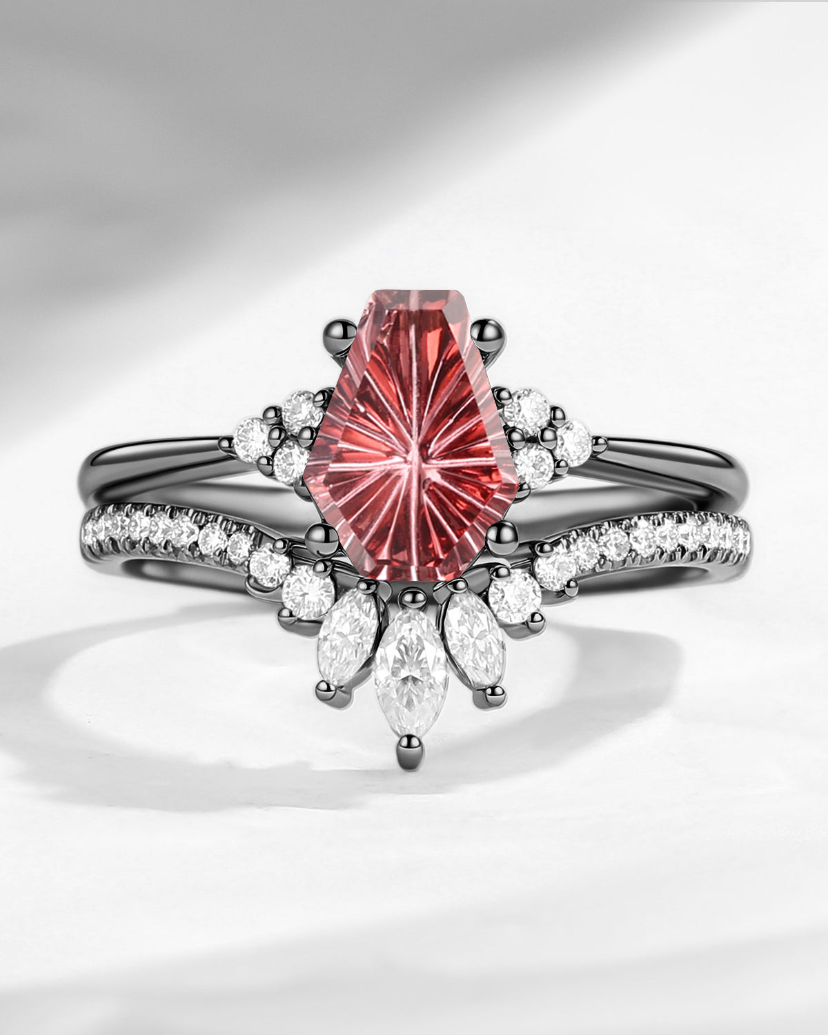 Unique Firework Cut Coffin Garnet Engagement Ring Set 2pcs - Coffin Kite