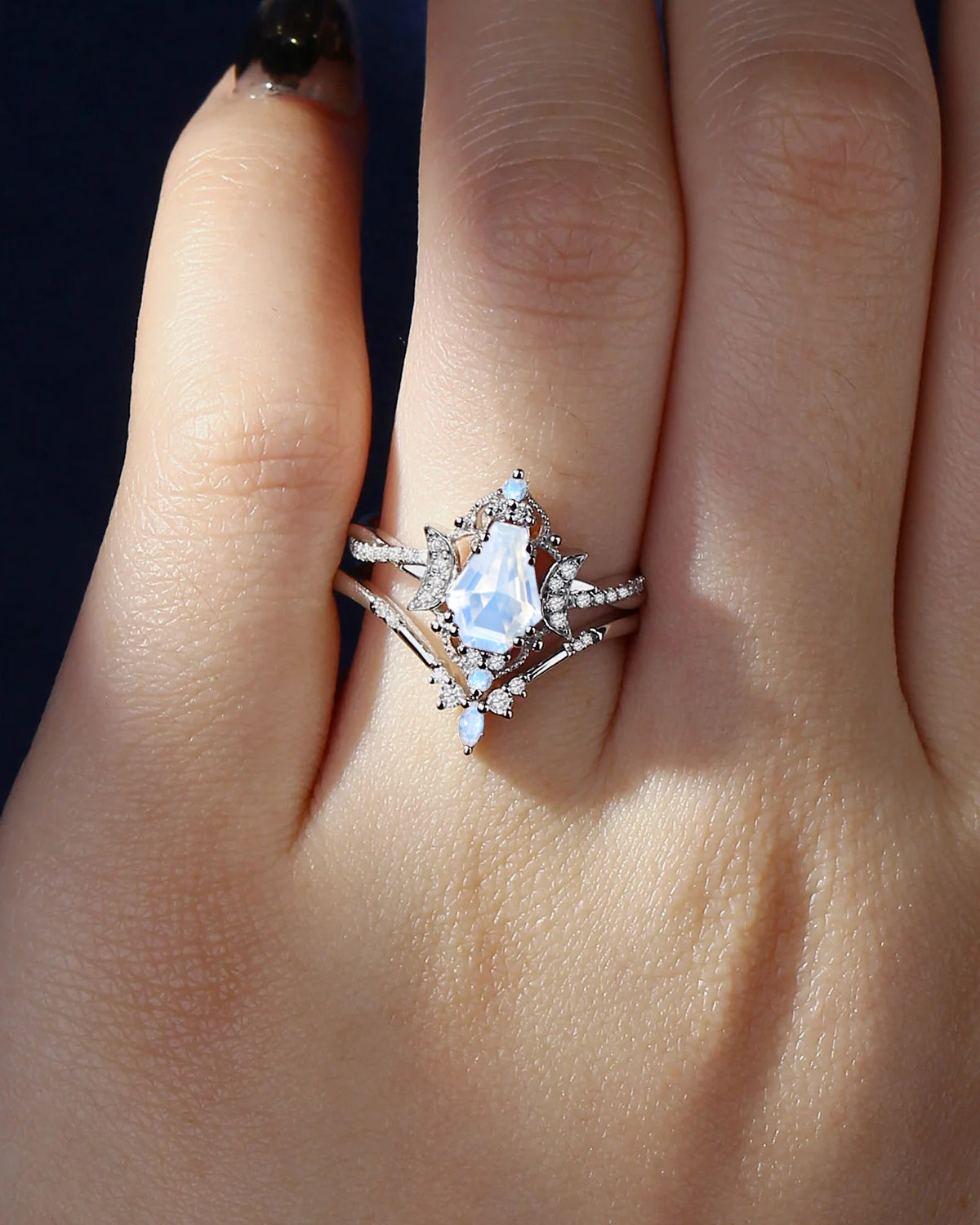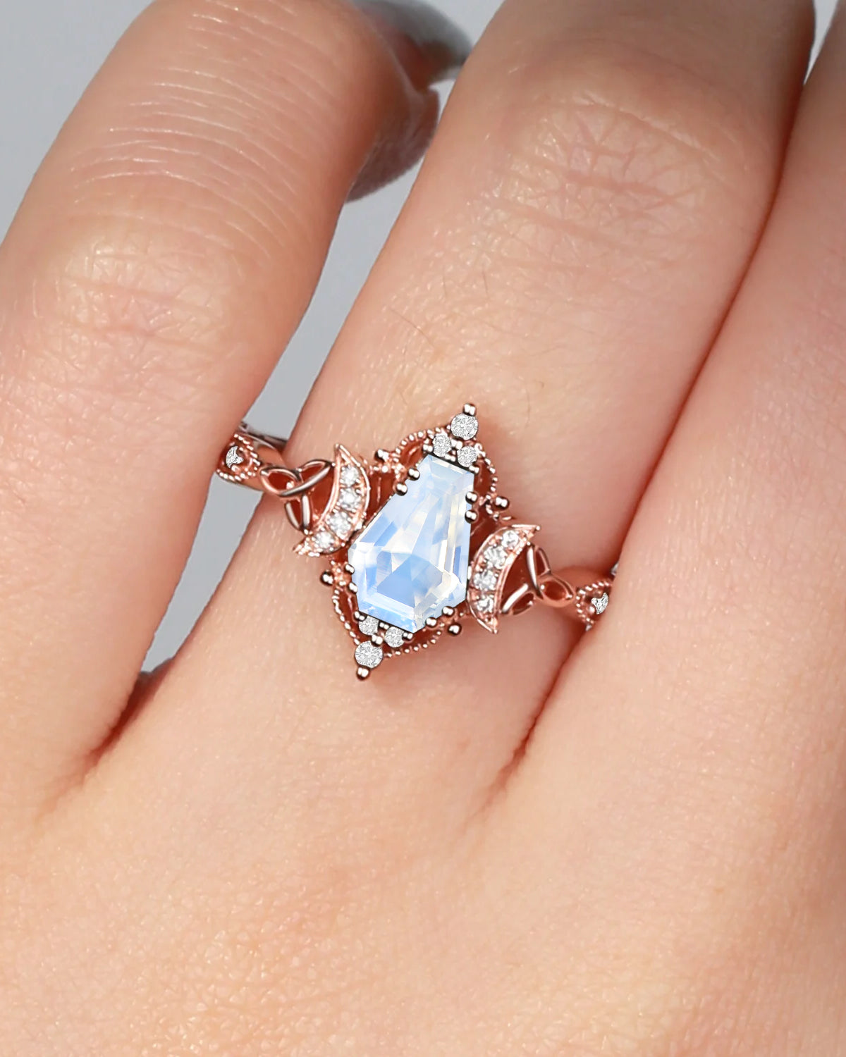 Crescent Moon | Unique Coffin Moonstone Infinity Celtic Engagement Ring