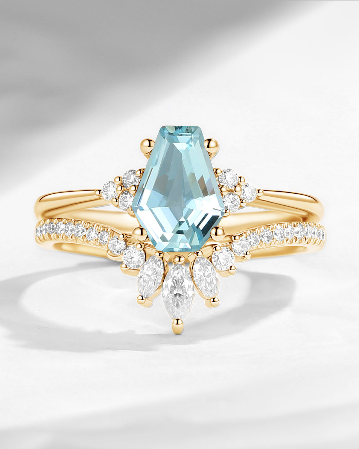 Classic Coffin Cut Natural Aquamarine Engagement Set 2pcs - White Dress