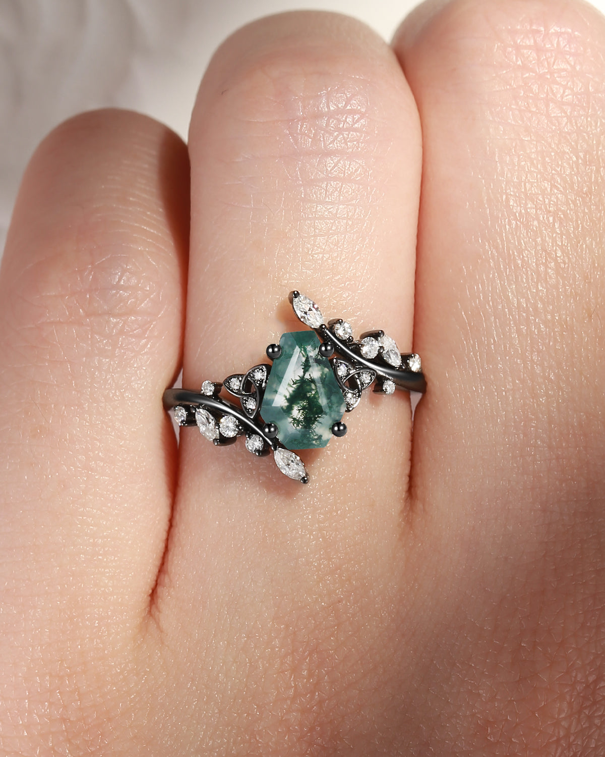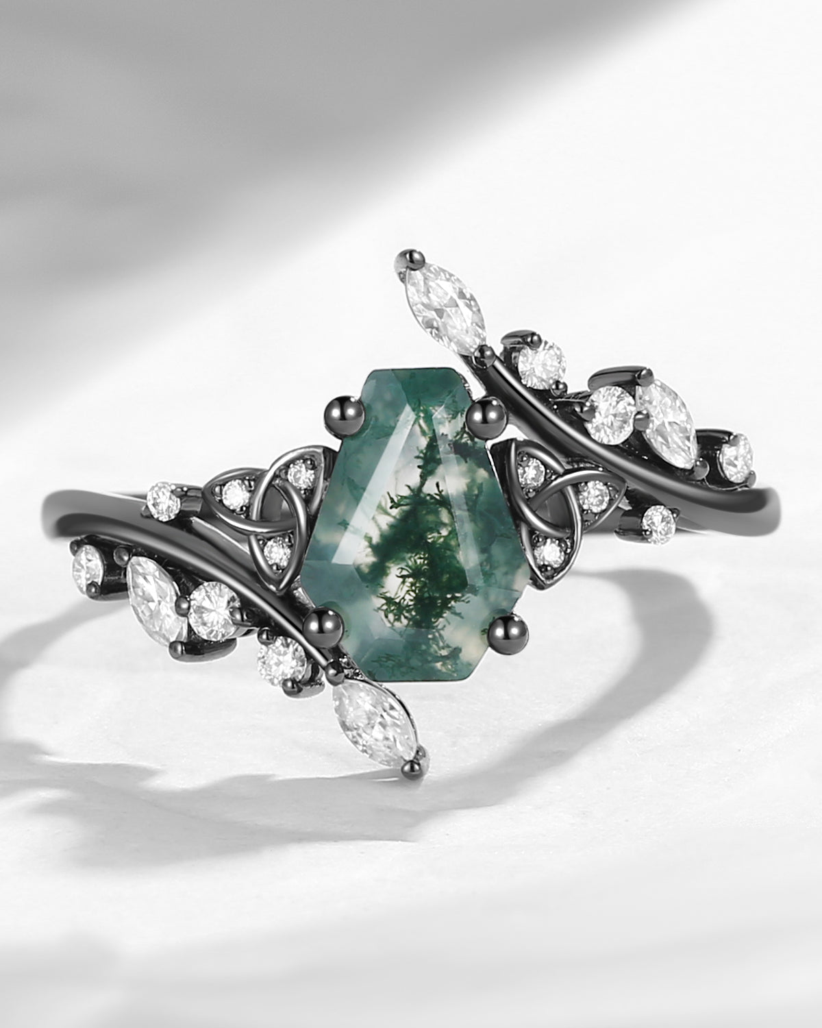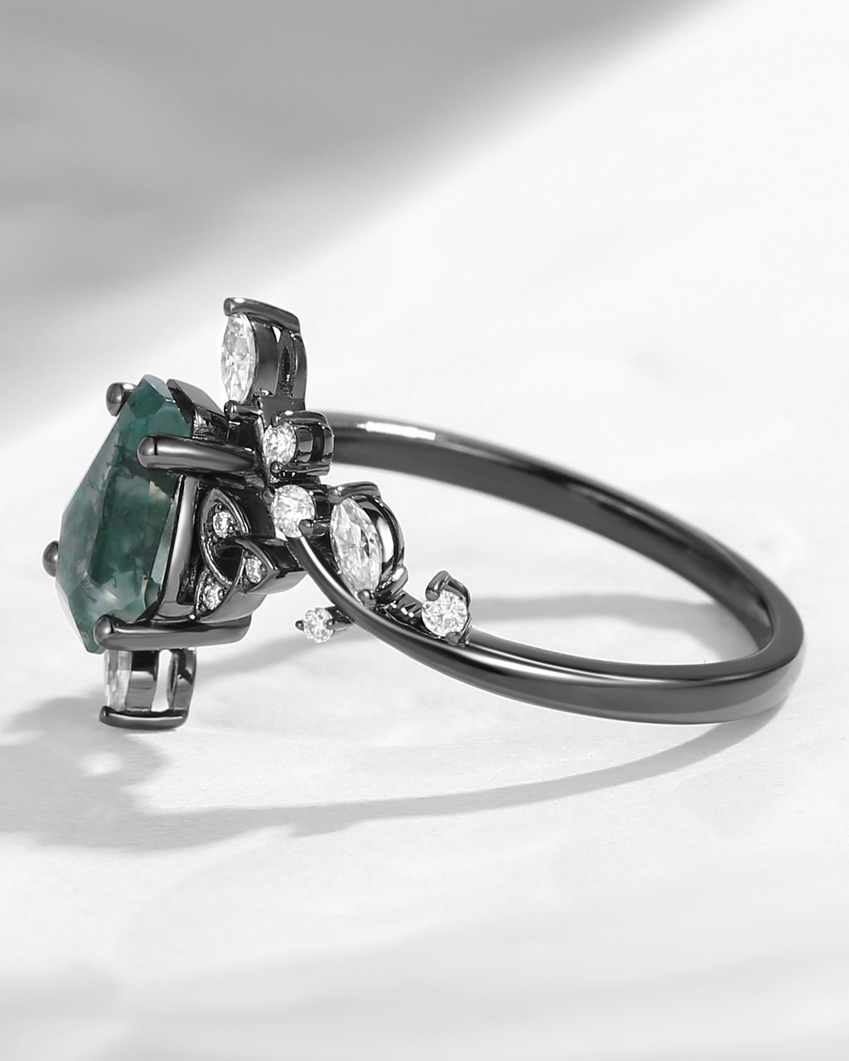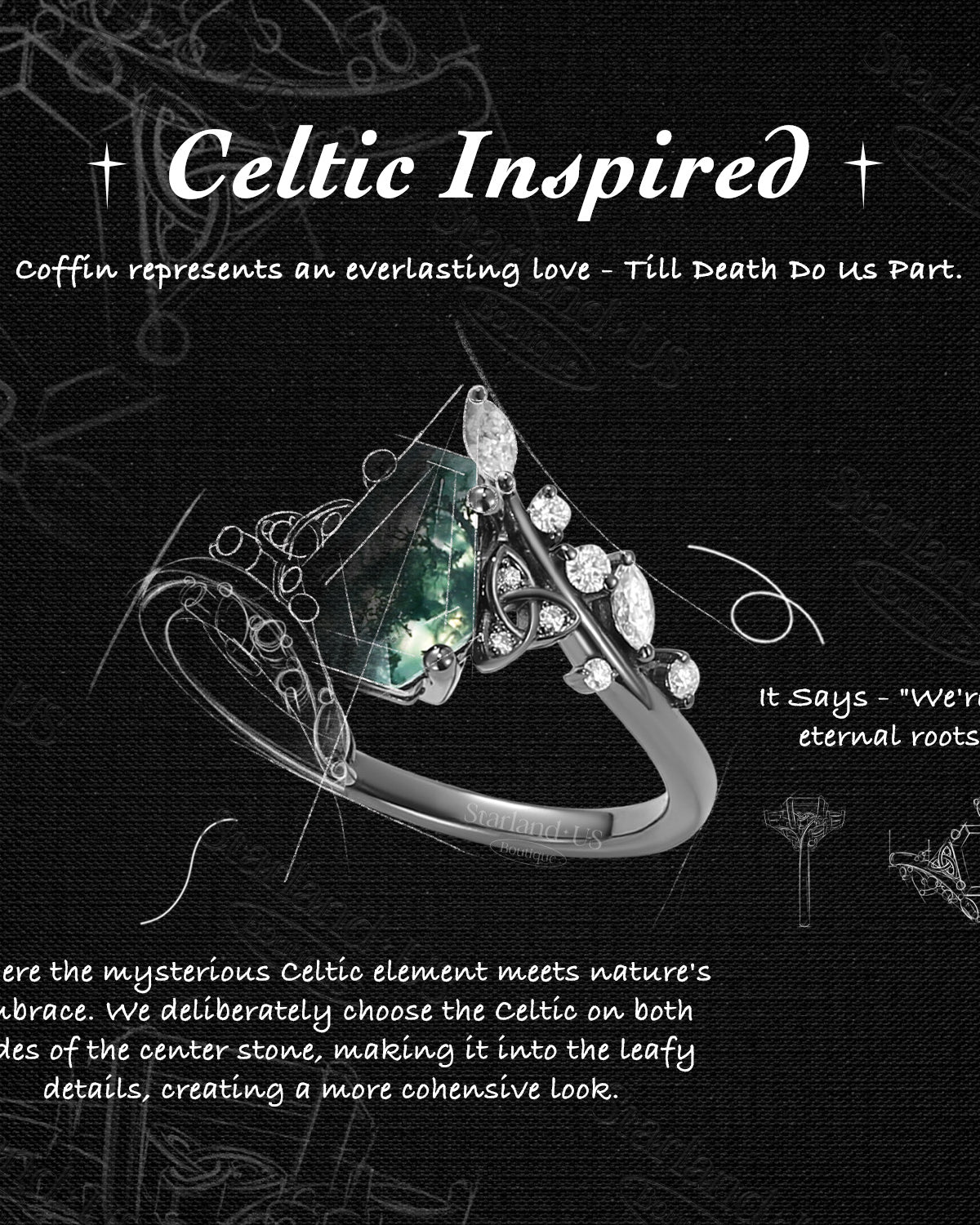 Coffin Moss Agate Nature Inspired Celtic Engagement Ring
