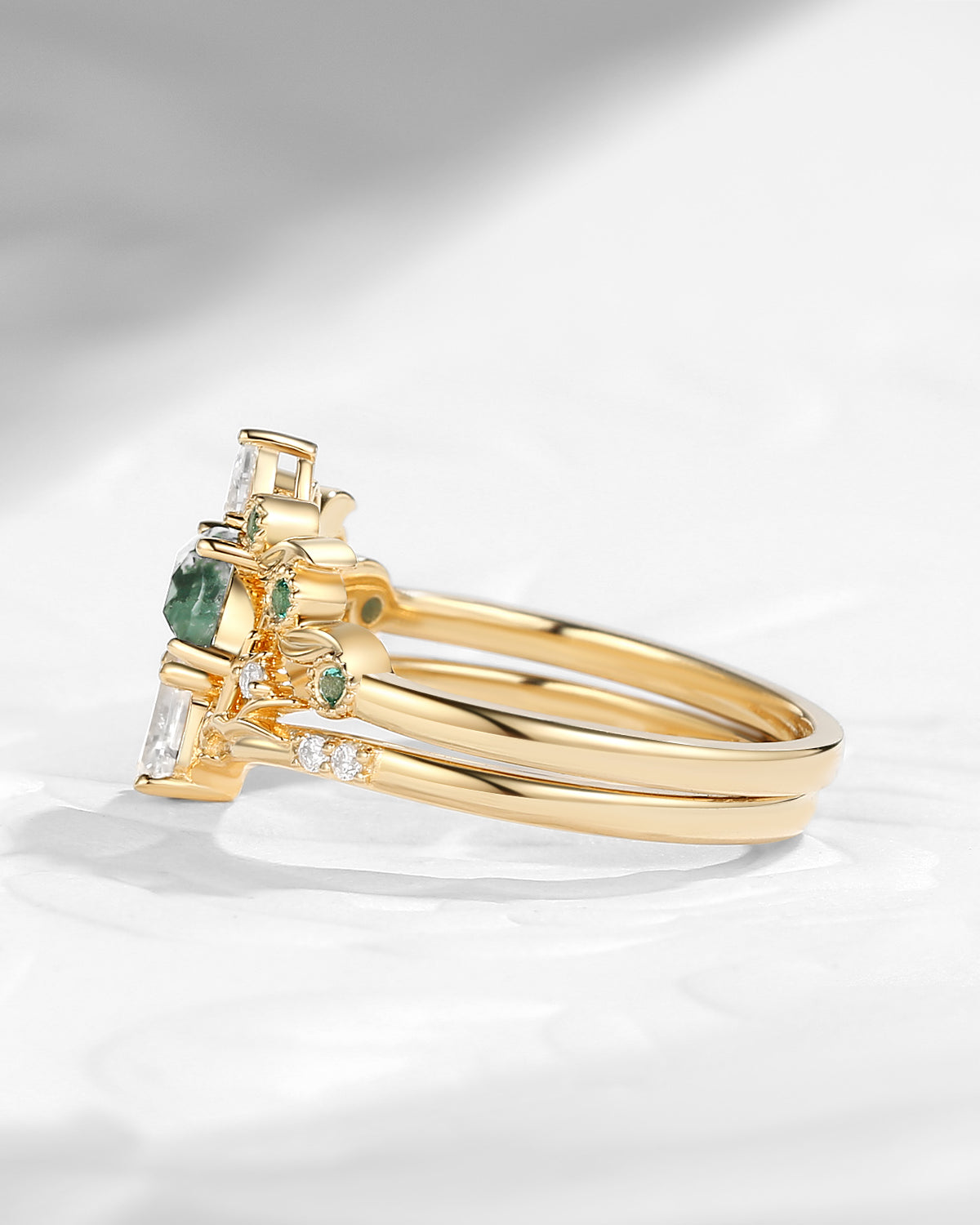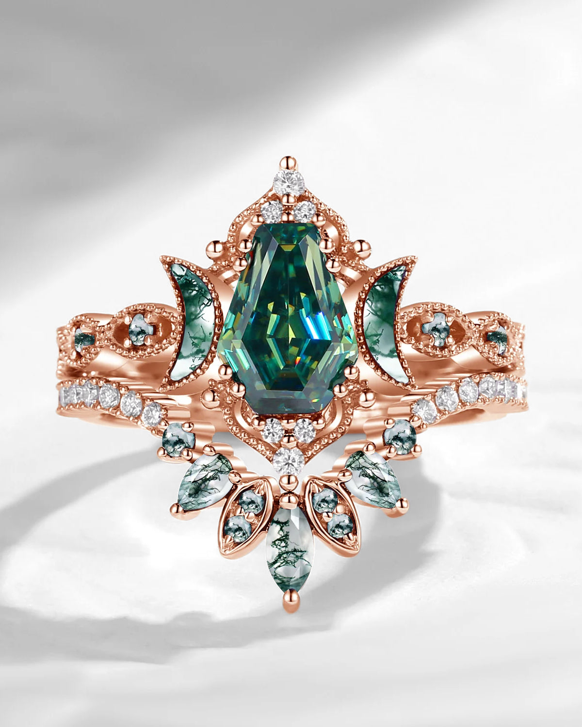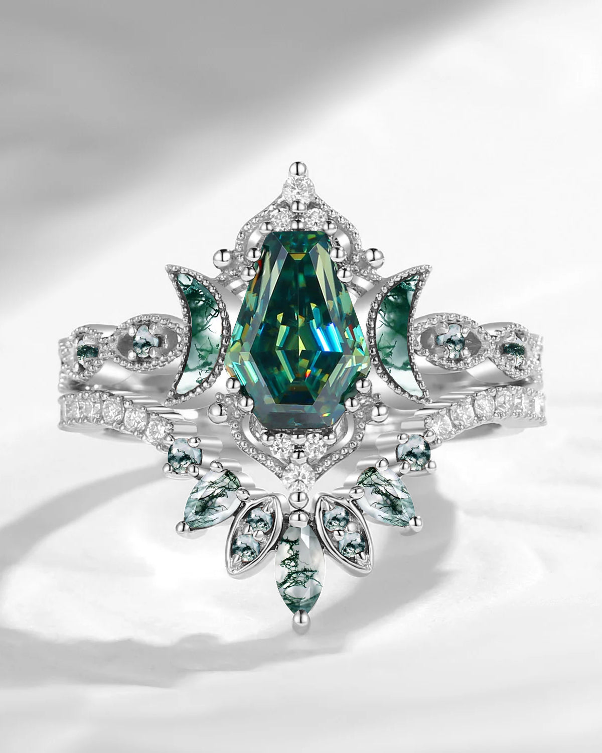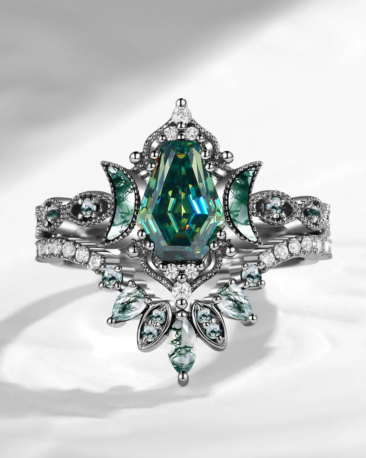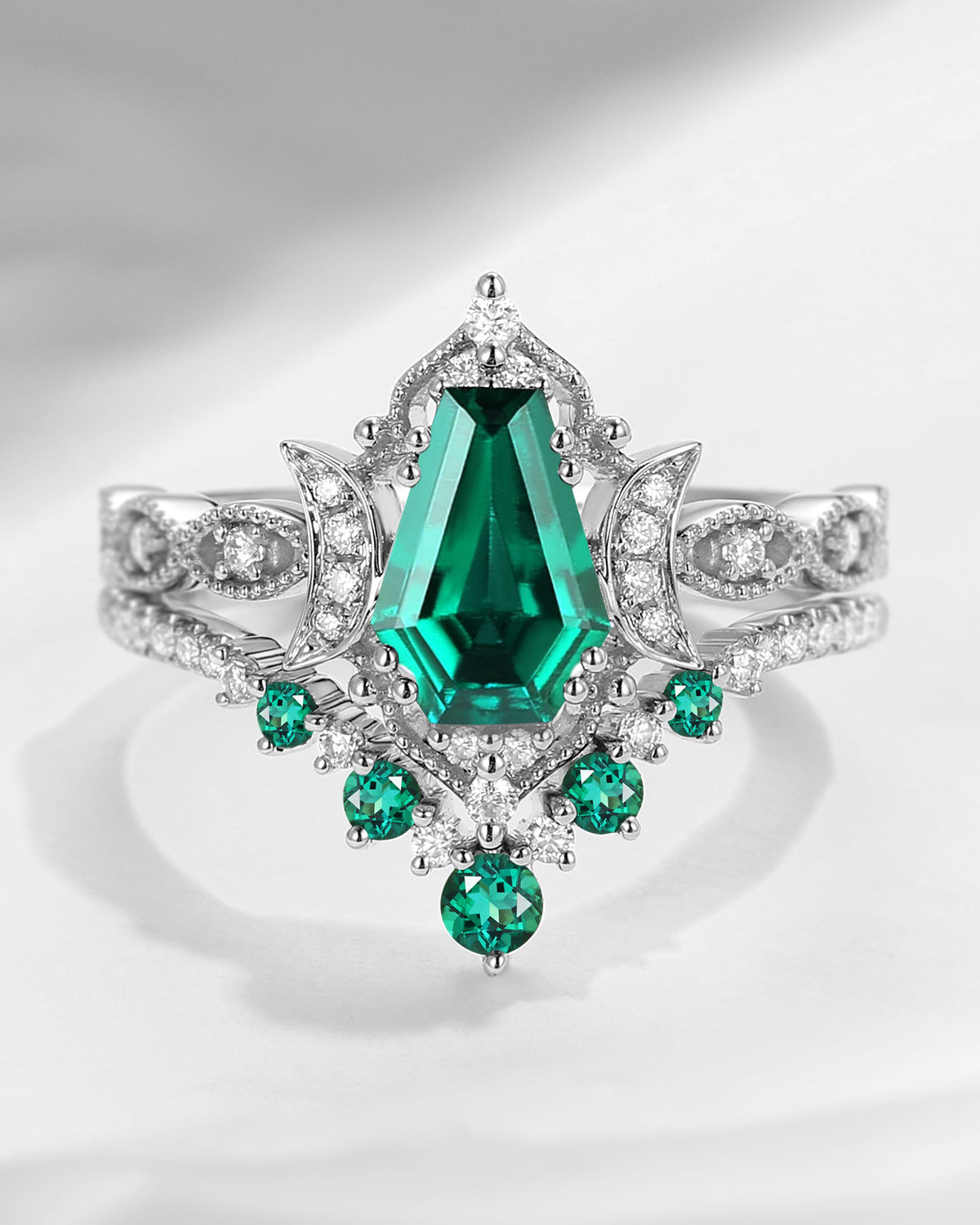 Crescent Moon | Coffin Cut Lab Emerald 'Till Death Do Us Apart' Ring Set 2pcs