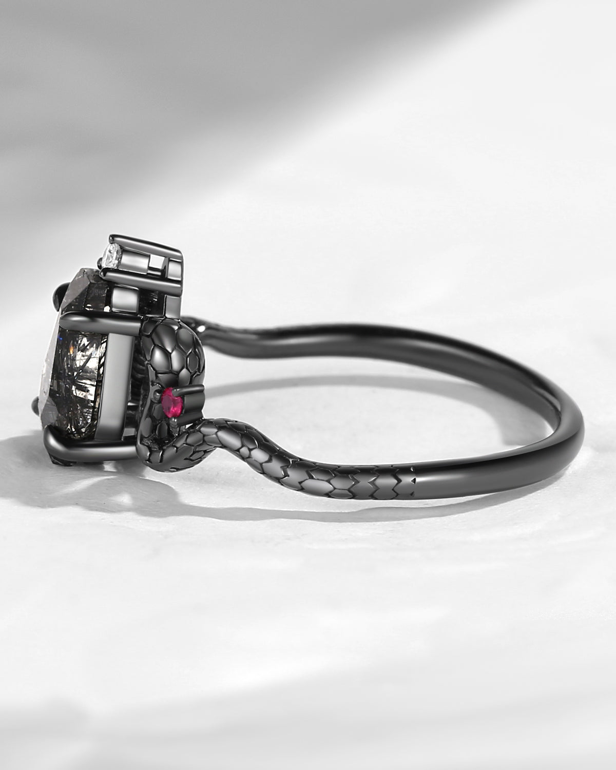 Gothic Inspired 'Dark Romance' Coffin Shaped Garnet Black Gold Engagement Ring Set 2pcs